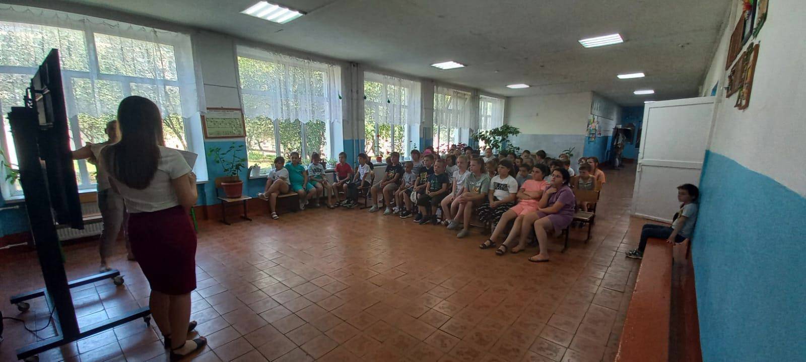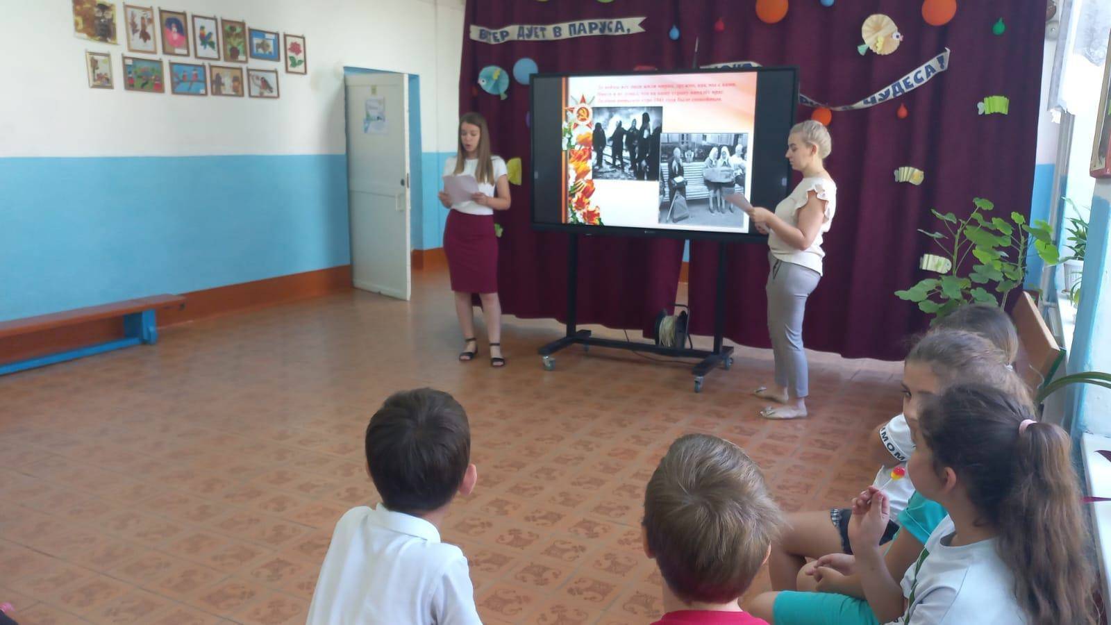 В этот день, в рамках акции в летнем оздоровительном лагере в МБОУ СОШ №1 им. А.Г. Сапрунова сотрудниками Гиагинского краеведческого музея была проведена беседа, посвященная далекому, но очень тяжелому дню. Ребятам напомнили о событиях того страшного дня, они посмотрели презентацию "Детям о войне", а также была проведена викторина по датам и событиям, связанными с войной.