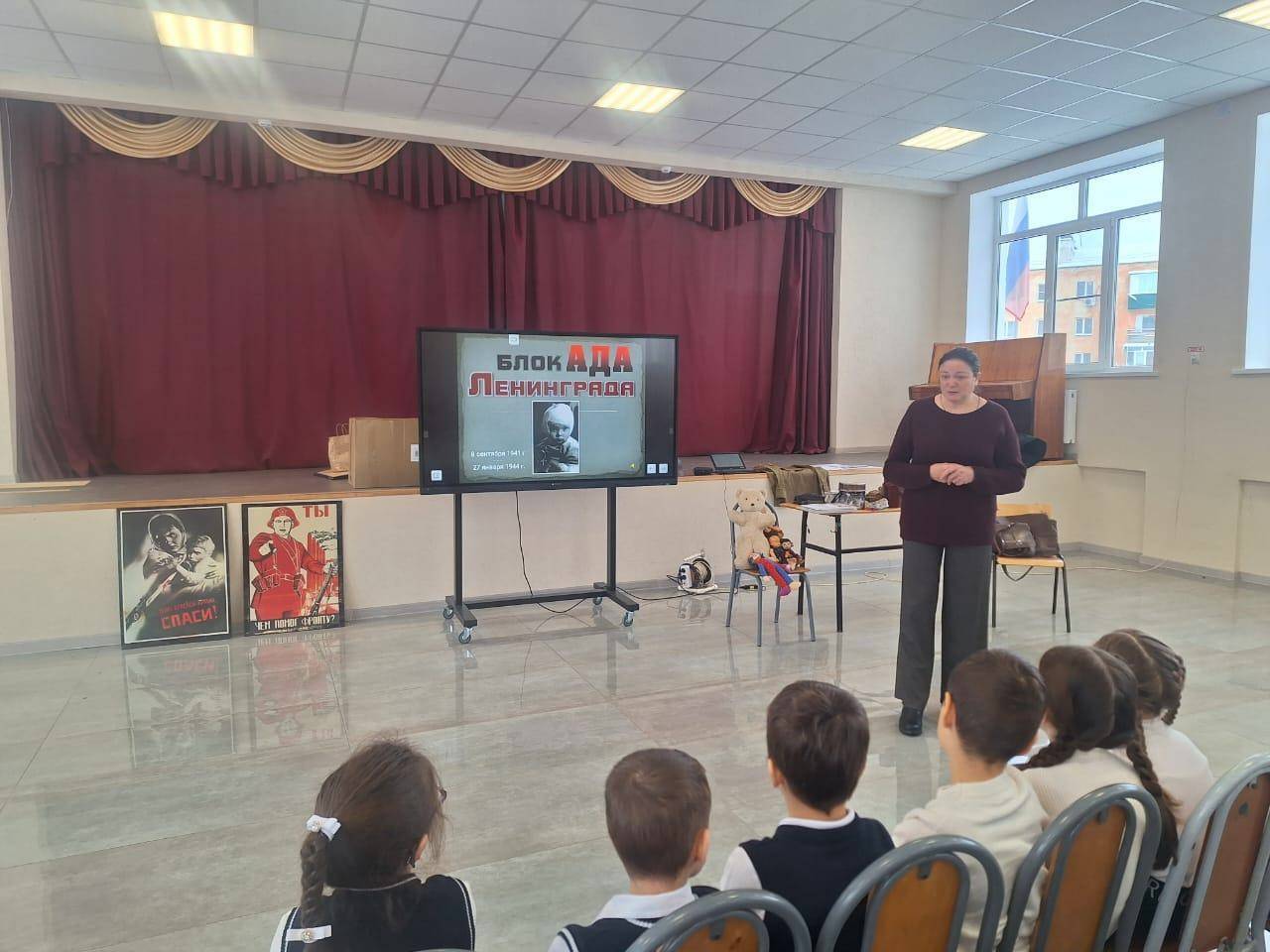 Всю неделю с 22 по 26 января 2024 г. сотрудники Национального музея РА посещали школы с циклом выездных мероприятий «Защитники Родины». К Дню полного освобождения Ленинграда были проведены встречи с учащимися Майкопской гимназии № 22, Средней школы № 17, НШ «Глобус», школы № 18 х. Гавердовского.