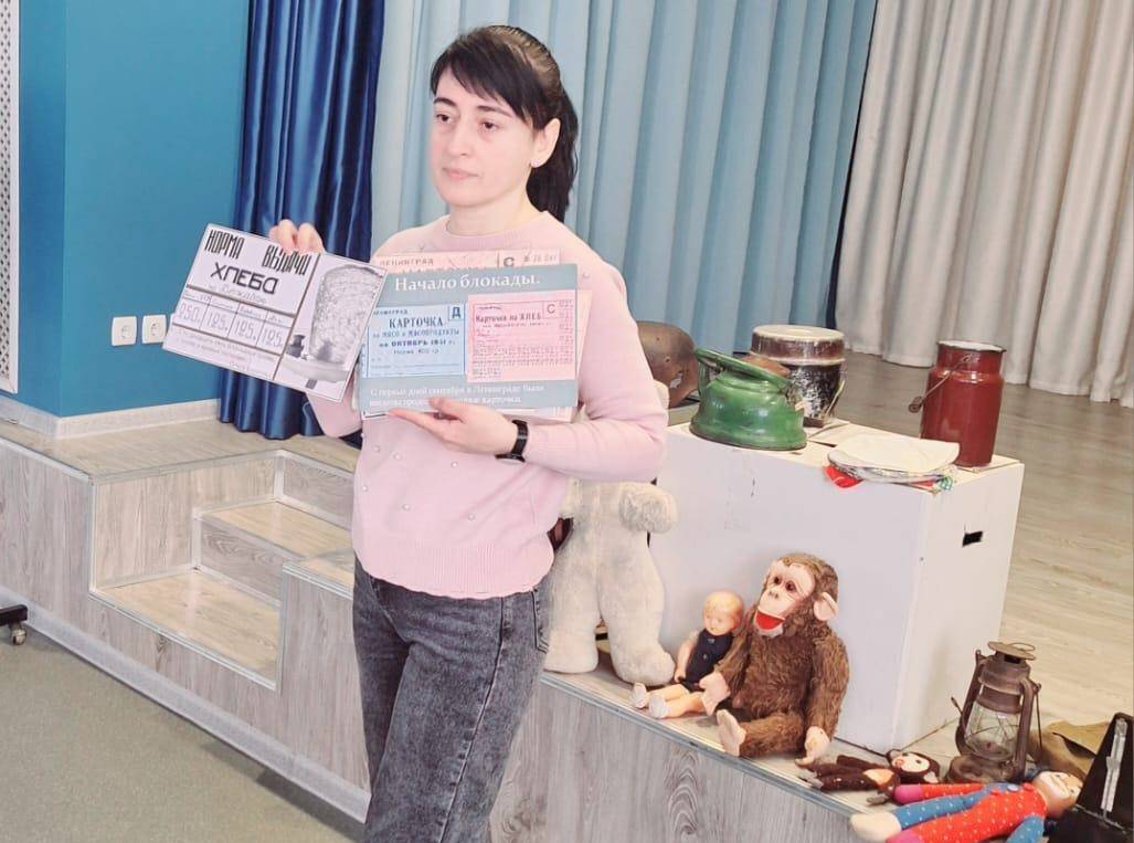 «По страницам блокадного Ленинграда», «Дорога жизни», «Белые панамы. Символ Ленинграда» – все эти темы мероприятий посвящены трагическим событиям, продолжавшимся 900 дней. Сотрудники музея рассказали ученикам о блокаде Ленинграда, о тех, кто принимал участие в освобождении города, о тяготах и подвигах обычных граждан, мужестве и стойкости народа. Детям была показана презентация, продемонстрированы экспонаты времен Великой Отечественной войны.