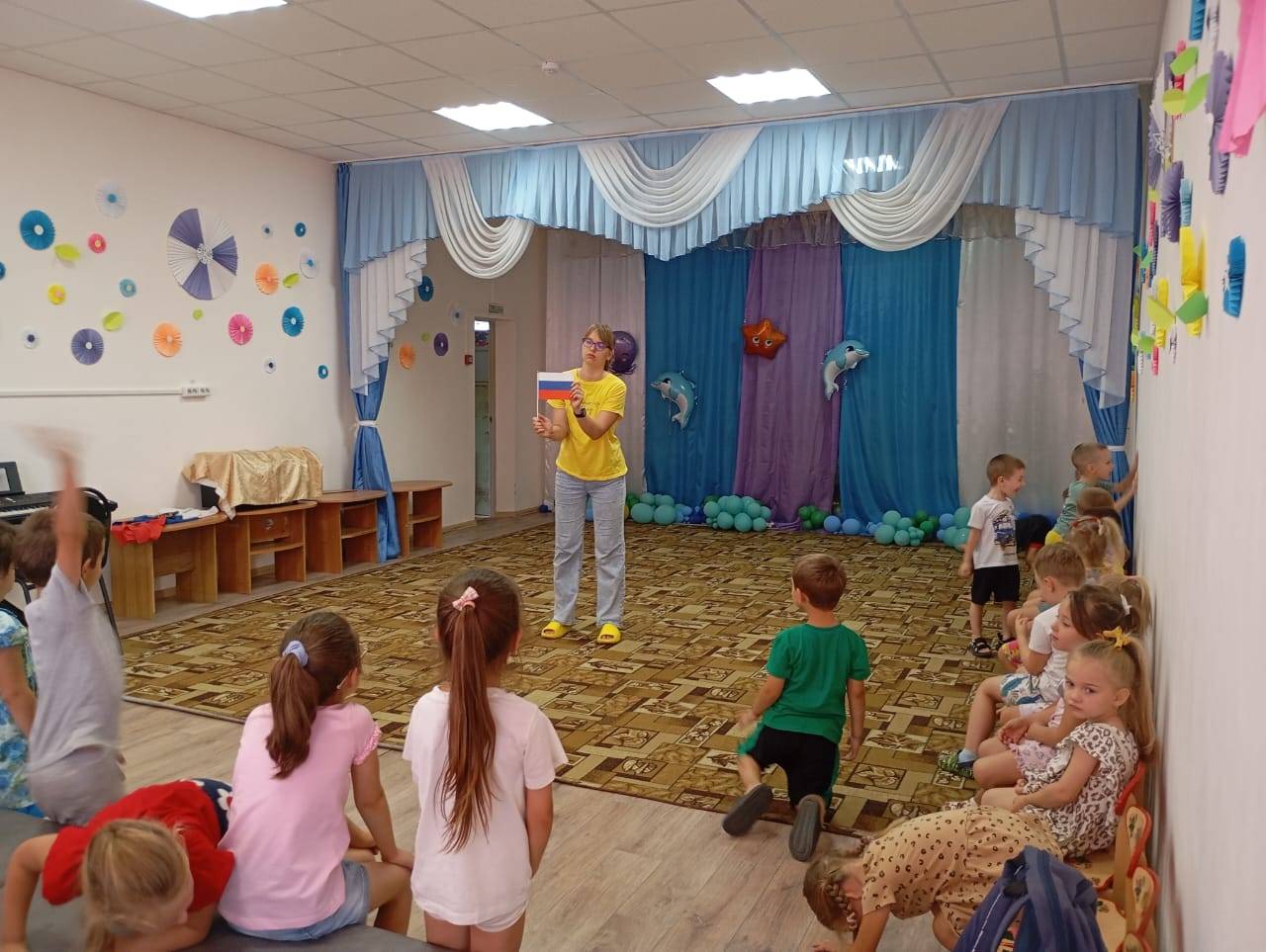 С детьми провели беседу о государственных символах России, рассказали об истории флага, объяснили значение цветов российского флага. Работники музея познакомили детей с историей праздника и прочитали стихи о России. Мальчики и девочки участвовали в играх и эстафетах, связанных с символикой российского флага. Дети проявили большой интерес к мероприятию и с удовольствием участвовали в играх и конкурсах. Они узнали много нового об истории и традициях Дня флага России, а также укрепили свои знания о символическом значении цветов российского флага.