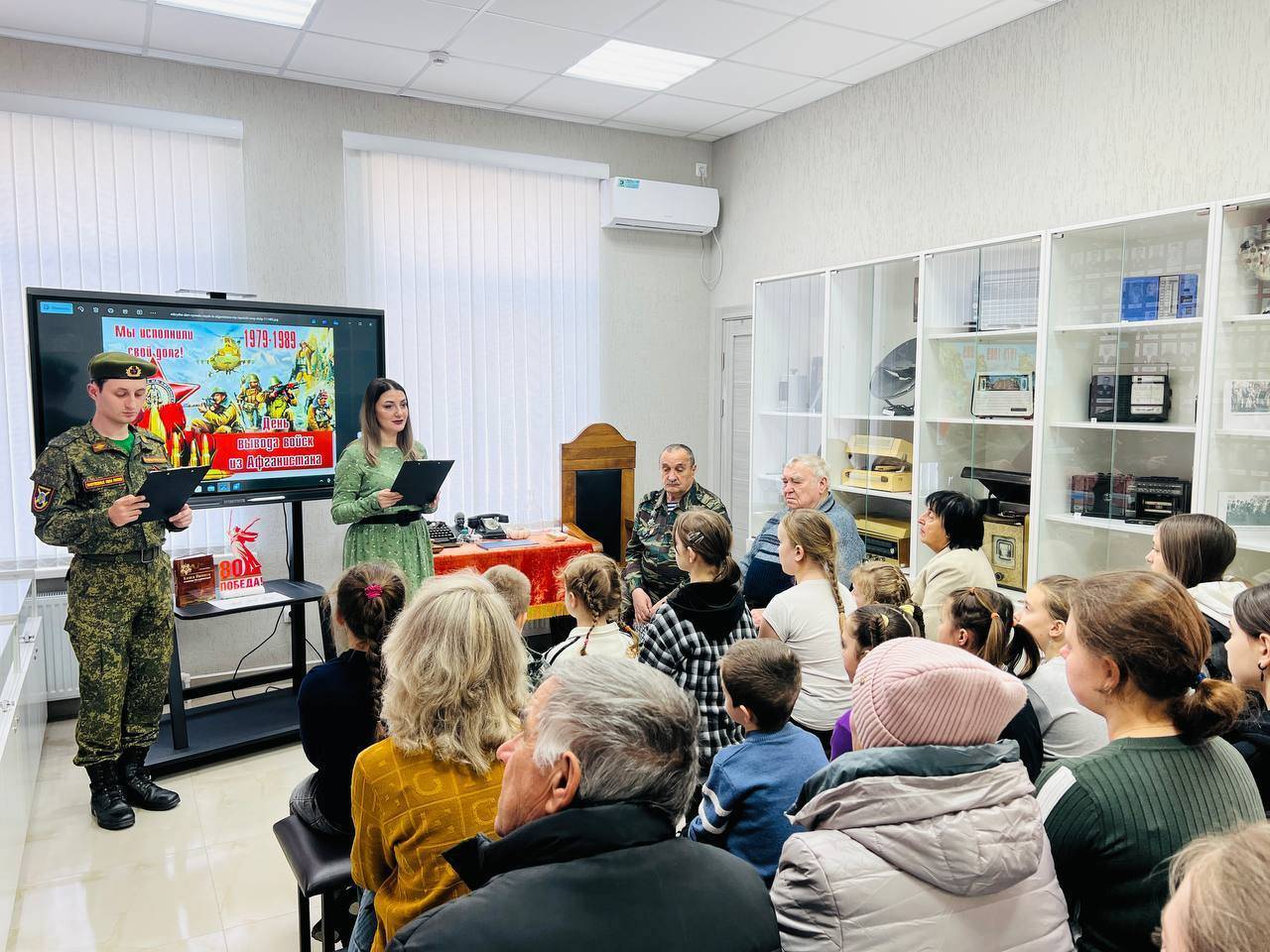 15 февраля в Келермесском музее истории казачества прошел исторический час «Память о той войне...», посвященный Дню памяти воинов-интернационалистов. В этот день мы собрались в музее, чтобы отдать дань уважения всем тем, кто защитил наши идеалы и свободу в жарких точках мира. На этом особенном мероприятии мы не только вспомнили об их подвигах, но и рассказали о важности сохранения памяти о войне и значимость мира в наше время. На мероприятие был приглашен участник войны в Афганистане, Миронюк Александр Сергеевич он поделился своими воспоминаниями и переживаниями, чтобы показать нам, что значит быть настоящим защитником Отечества. На мероприятии также рассказали о пути, которые прошли наши воины, о примерах мужества, стойкости и доблести, которые занимают важное место в нашей истории.