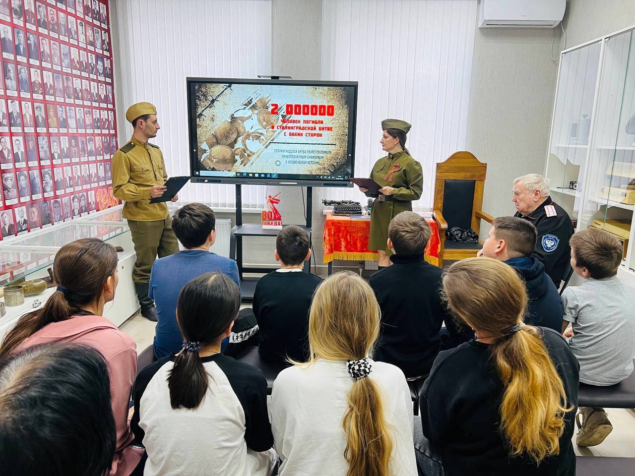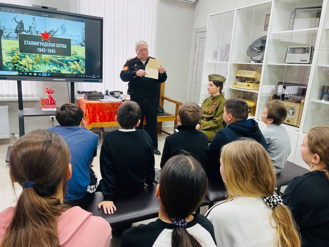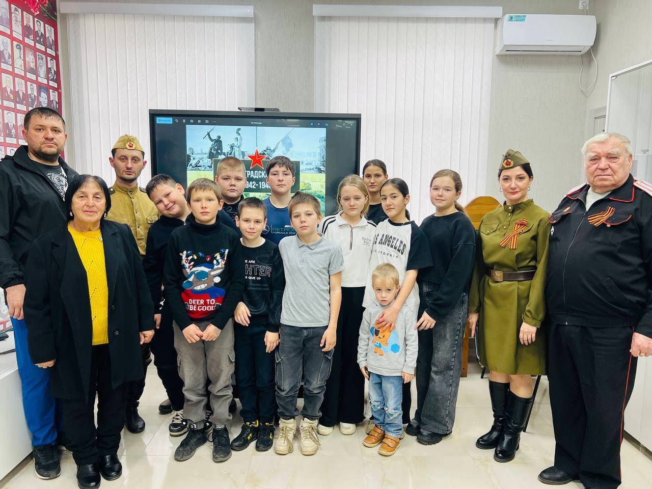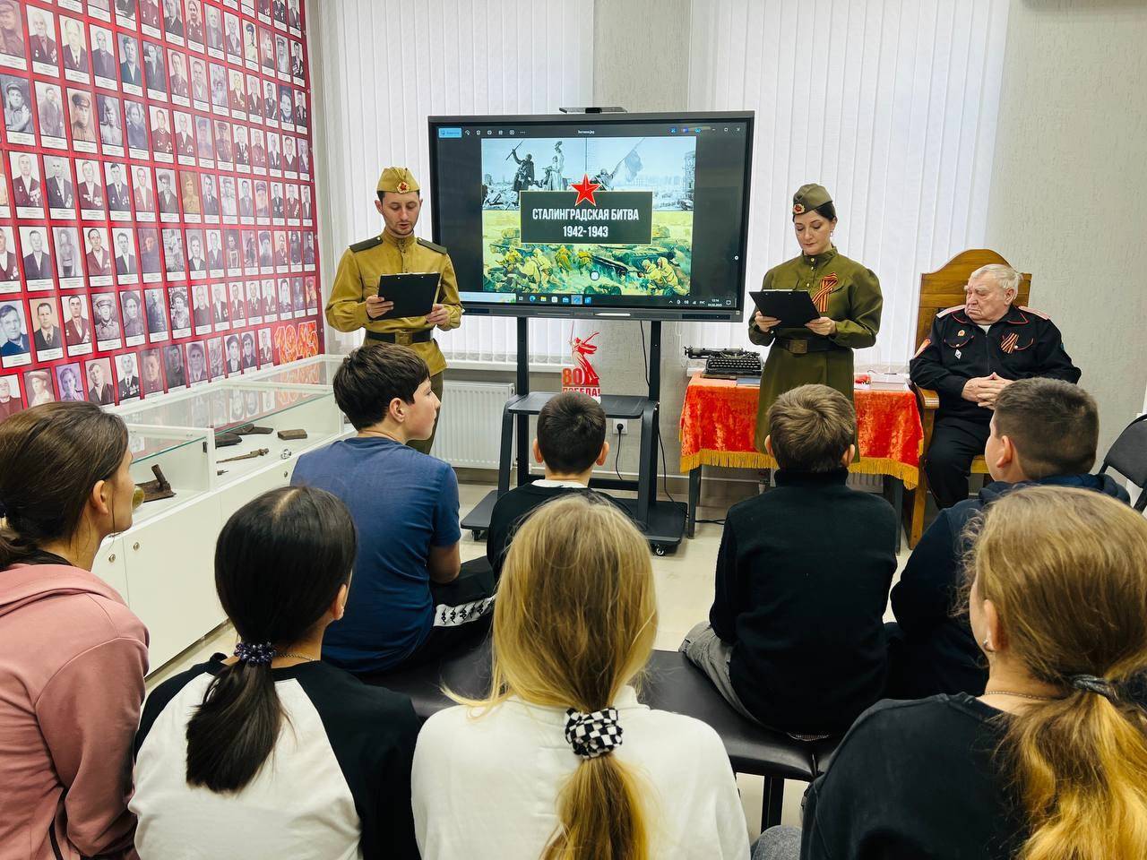 4 февраля в Келермесском музее истории казачества прошел исторический час «Сталинград. Битва победителей», посвящённый Дню разгрома советскими войсками немецко-фашистских войск в Сталинградской битве. В ходе мероприятия на фоне видео презентации, познакомили учащихся СОШ №8 им. В.Солдатенко с историческими фактами Великой Отечественной войны, с героической битвой под Сталинградом и с именами героев, чей подвиг сохранила история.