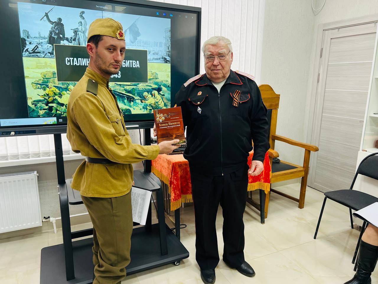 Приглашенный гость, Затолокин В.П рассказал участникам мероприятия о наших земляках, участниках Сталинградской битвы и подарил музею свою книгу «Книгу памяти станицы Келермесской». В конце мероприятия минутой молчания почтили память всех тех, кто подарил нам мир на земле ценой своей жизни.