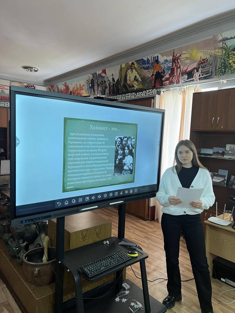 22 января в Дондуковском народном музее была проведено мероприятие, посвященное памяти жертв Холокоста. Для ребят была подготовлена презентация, в которой собраны архивные документы, свидетельства и фотографии, рассказывающие об ужасных преступлениях фашистов во времена Второй мировой войны. Учащиеся посмотрели видеоролик, из которого узнали, что означает слово холокост, кто такие арийцы, что такое гетто и «хрустальная ночь». Ни один из присутствующих на мероприятии не остался равнодушен.
