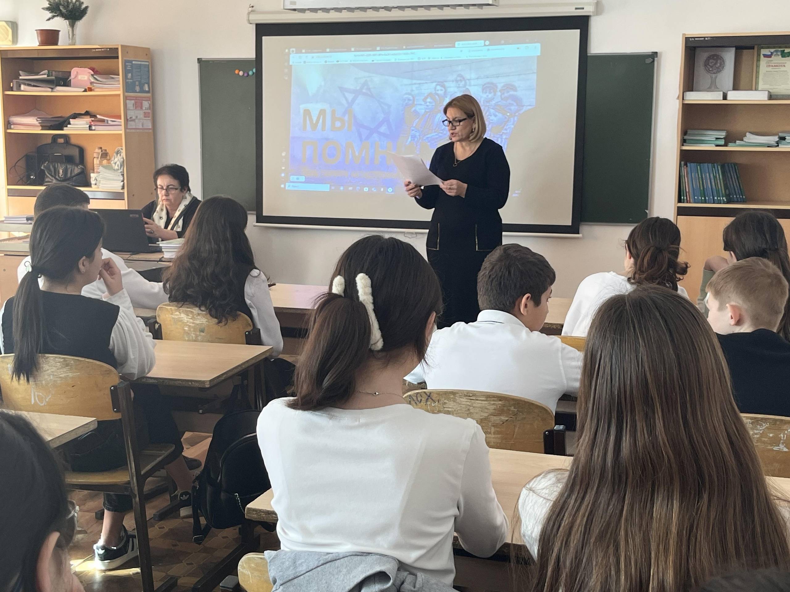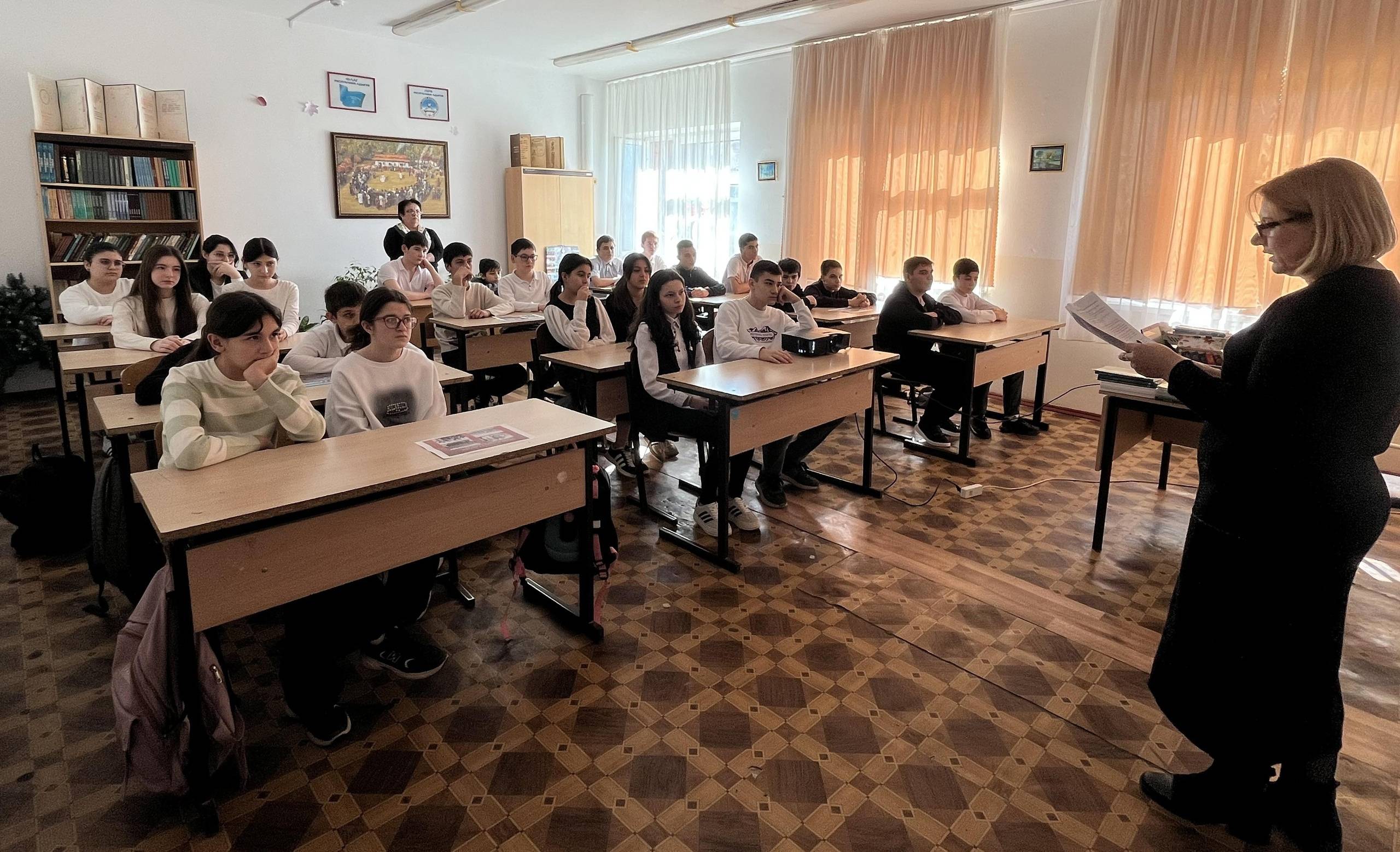 Сотрудники музея "Дом I съезда Советов Адыгеи" провели лекцию "Памяти жертв Холокоста" для учащихся 8-х классов Мамхегской СОШ №4.