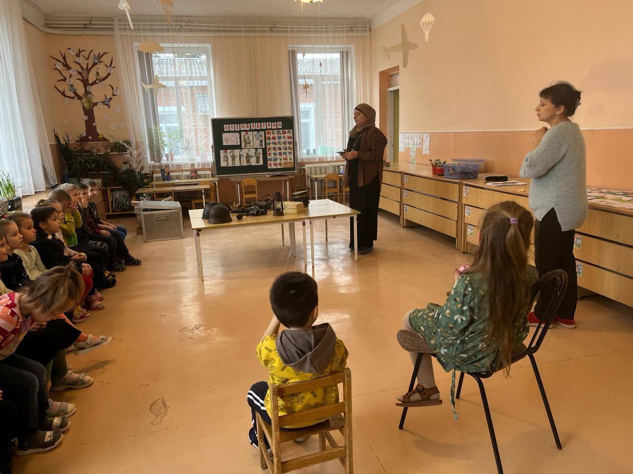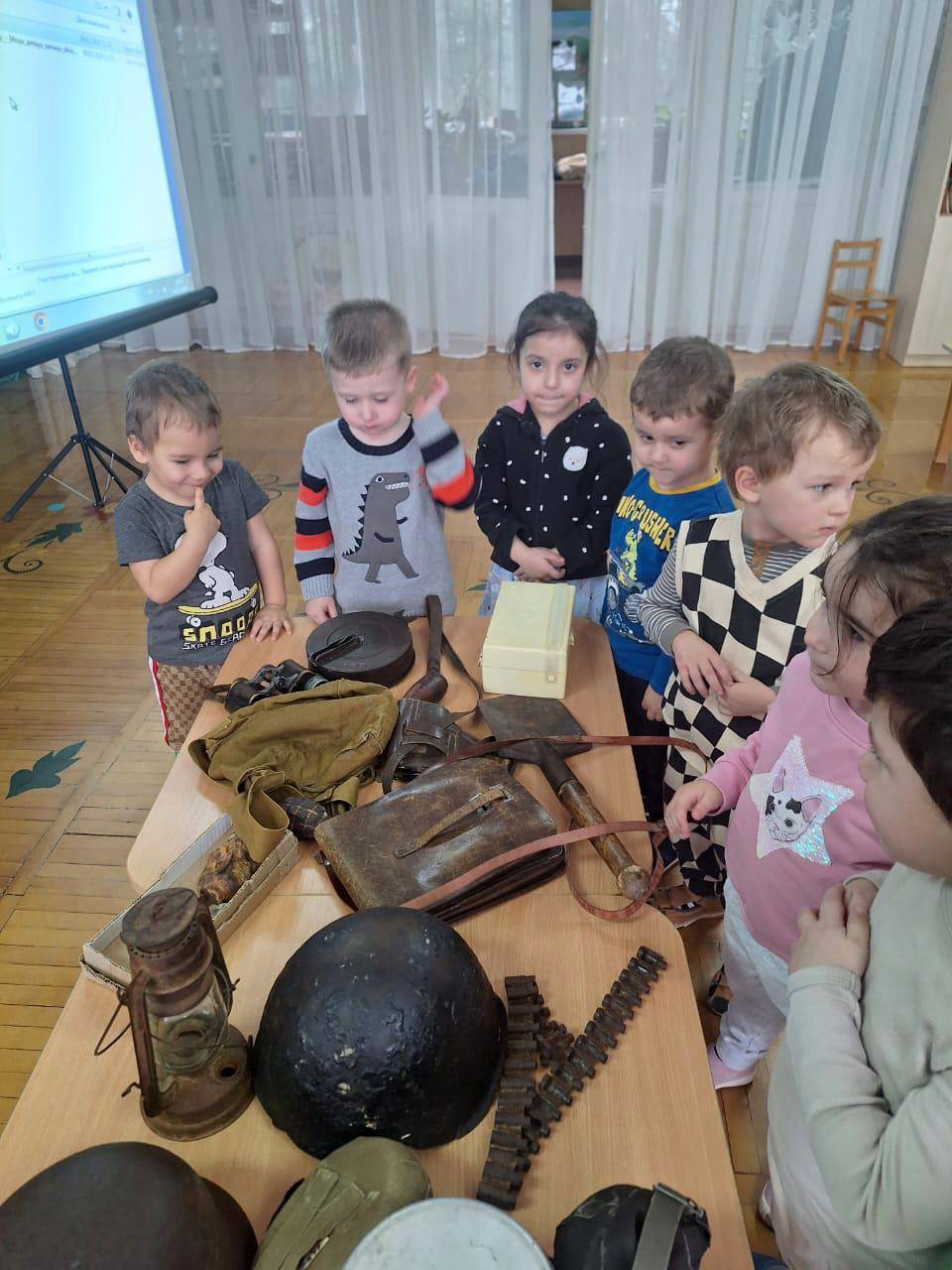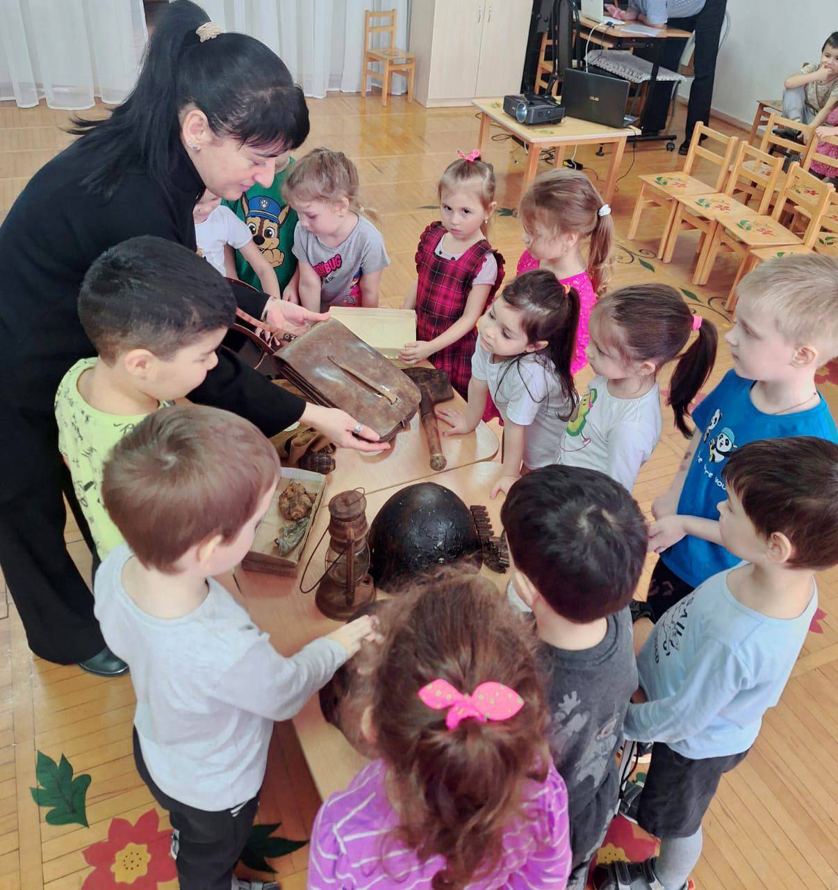Очередные выездные мероприятия были проведены сотрудниками Национального музея РА. Встречи с малышами из МБДОУ № 31 и МБДОУ № 2 были посвящены теме «Защитники Родины». Детям рассказали о видах вооруженных сил нашей страны и военных профессиях. С большим интересом мальчики и девочки рассмотрели музейные экспонаты времен Великой Отечественной войны.