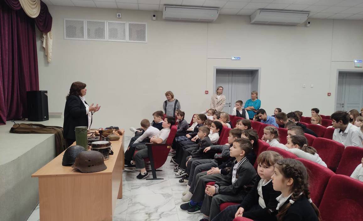 С особым вниманием ребята слушали о жизни детей, таких же как они, мальчиков и девочек, в нечеловеческих условиях голода и холода. В ходе мероприятия ученикам показали тематическую презентацию и продемонстрировали подлинные экспонаты времен Великой Отечественной войны.