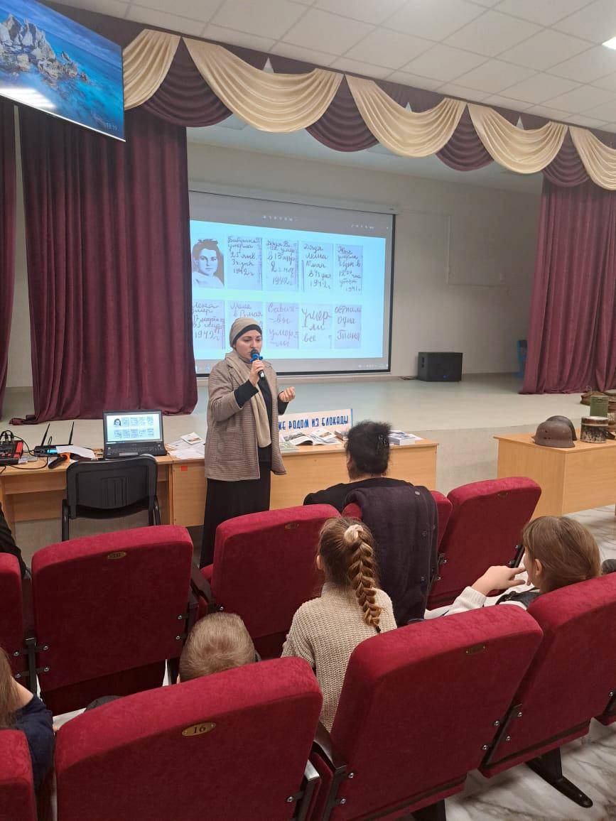 С выездным мероприятием, посвященным полному освобождению Ленинграда от немецко-фашистских захватчиков, сотрудники Национального музея РА посетили СШ № 23 ст. Ханской. Школьников ознакомили с важными историческими фактами о блокаде города, рассказали о тяжелых испытаниях ленинградцев.