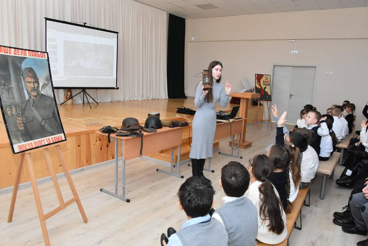 23 января сотрудниками Национального музея РА было проведено несколько мероприятий для учеников МБОУ № 18 х. Гавердовский. Встреча с ребятами младших классов была посвящена освобождению города Майкопа и Адыгеи от немецко-фашистских захватчиков, старшеклассникам рассказали о блокаде Ленинграда. Научные сотрудники музея подготовили для детей видеопрезентацию, зачитали письма-воспоминания жителей оккупированного Майкопа. Школьники узнали о тяжелом быте людей во время оккупации, о средствах фашистской пропаганды, с интересом ознакомились с подлинными музейными экспонатами. Старшеклассникам были продемонстрированы «хлебные» карточки, которые выдавались жителям Ленинграда. Детям также рассказали о героях из Адыгеи, которые стойко защищали блокадный город от немецко-фашистских войск.