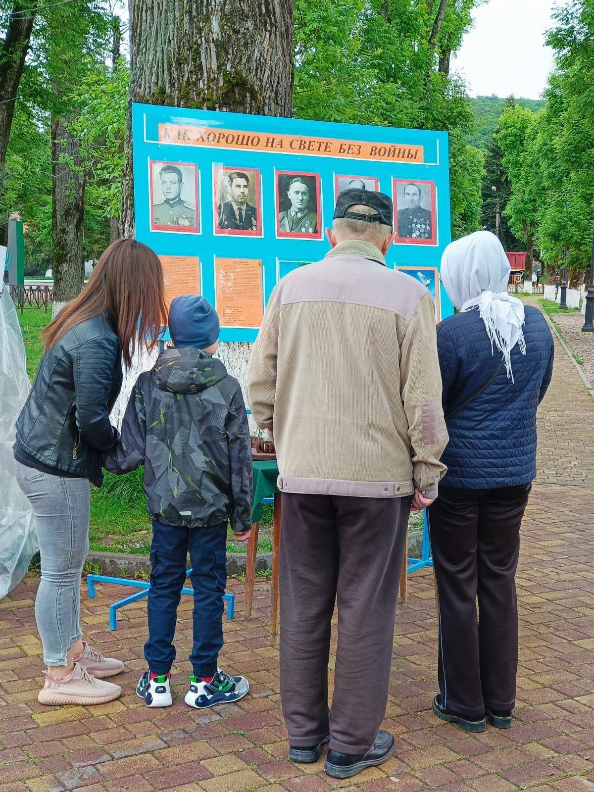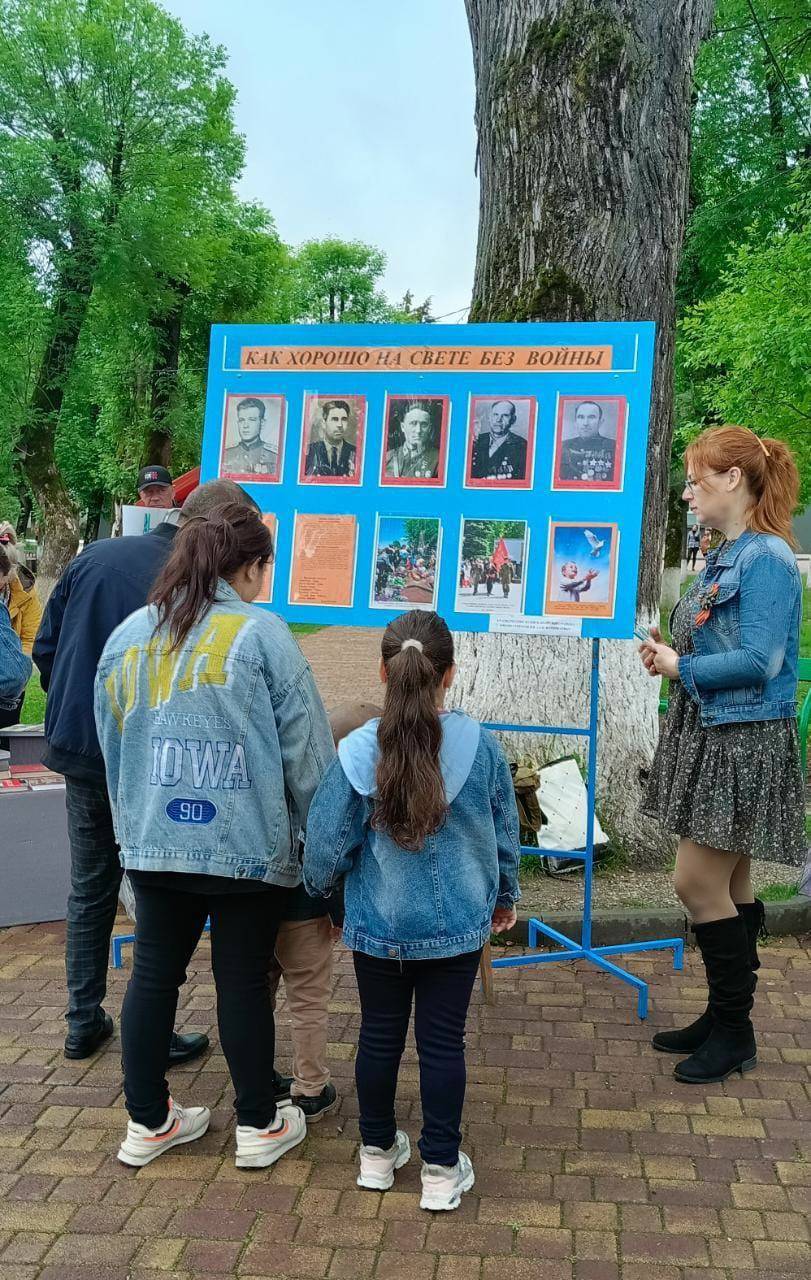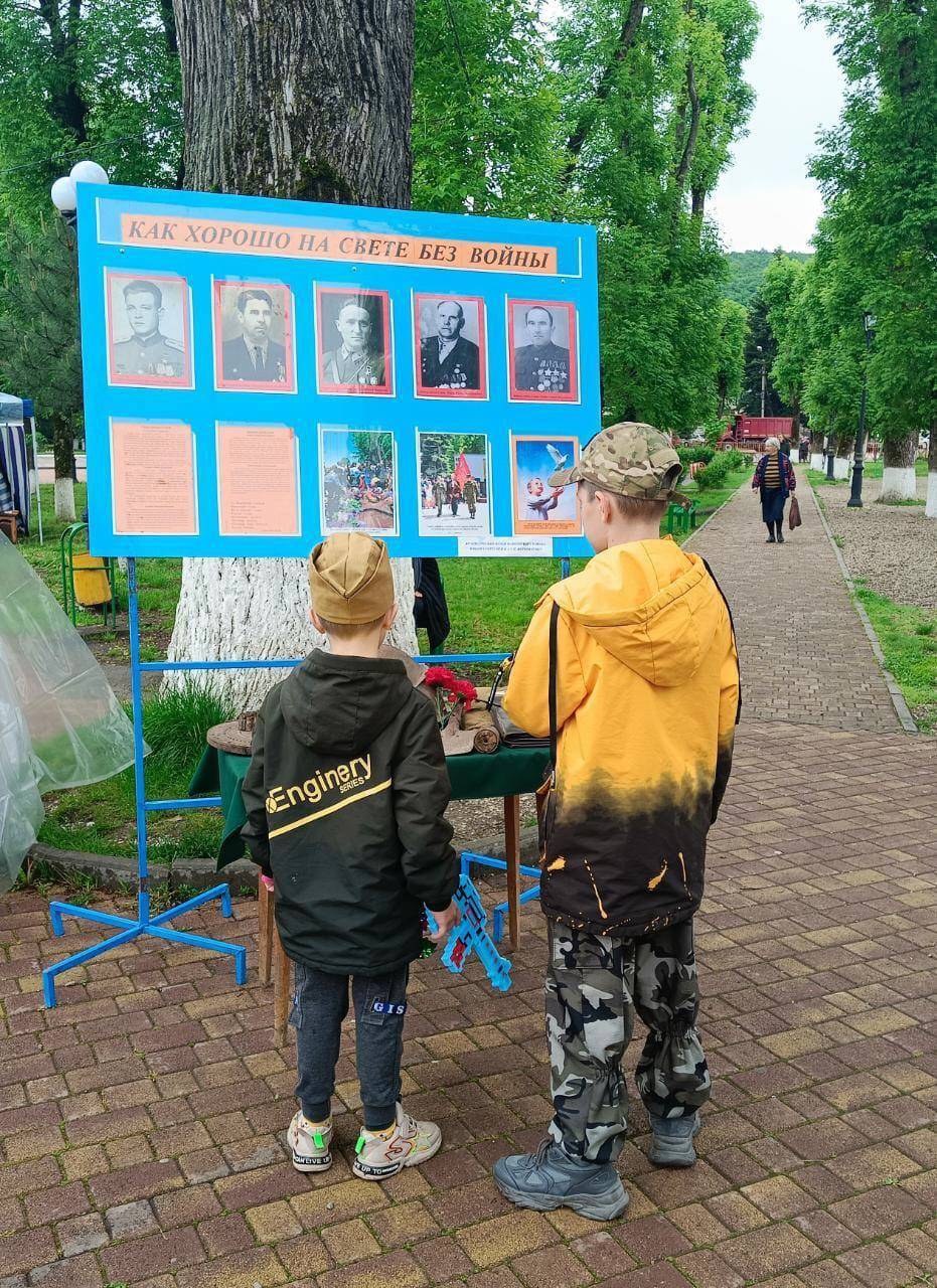 В День Великой Победы, 9 мая, сотрудники музея оформили выставку «Как хорошо на свете без войны» в парке п. Тульского. На выставке были представлены фотографии Героев Советского Союза, живших в Майкопском районе и совершивших свои подвиги во время Великой Отечественной войны. Также были выставлены военные предметы, найденные основателями музея на горных перевалах района, где шли бои, предотвратившие продвижение немецко-фашистских захватчиков к черноморскому побережью и книга «Победители», в которой собрана информация о жителях Адыгеи, воевавших на фронтах Второй мировой войны.