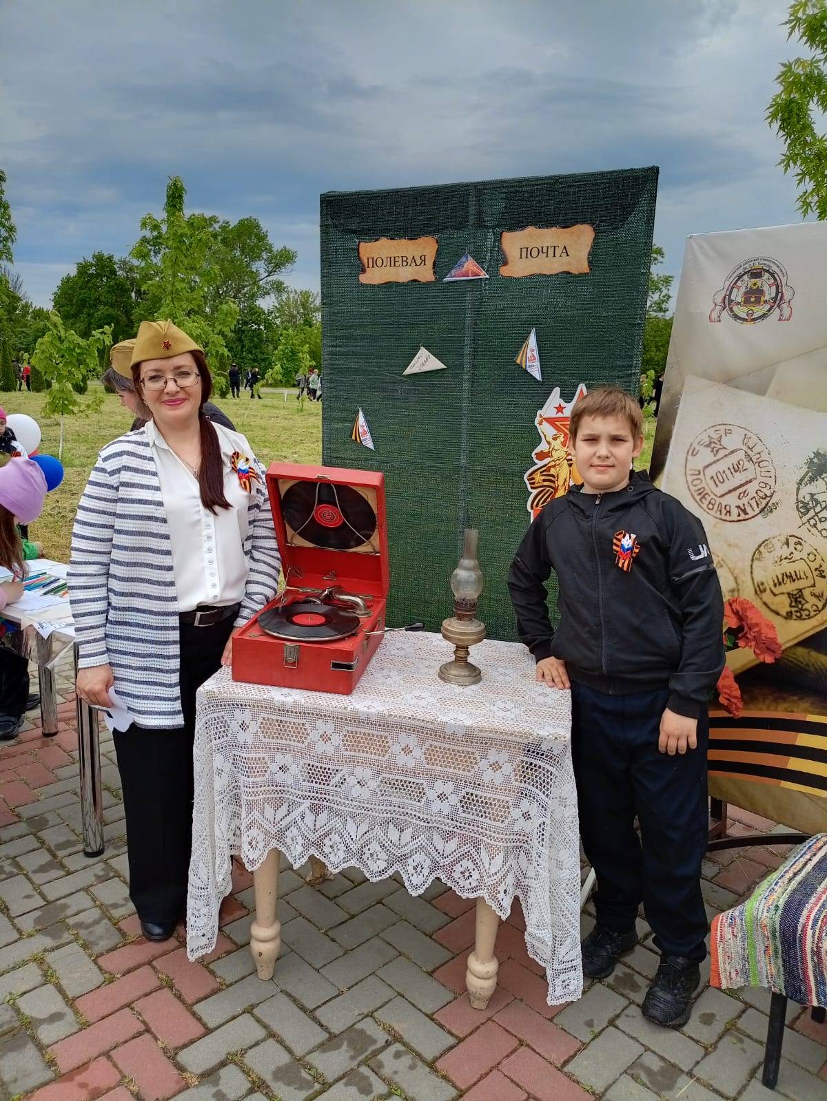 На выставке были представлены два ярких стенда «Голуби мира», символизирующие надежду и стремление человечества к миру, а также «Полевая почта», дающая возможность окунуться в историческое прошлое и вспомнить важность писем с фронта. Также были представлены экспонаты: чемоданы, гармонь, лампа, патефон, скатерть, алюминиевая кружка, фляжка, каска.