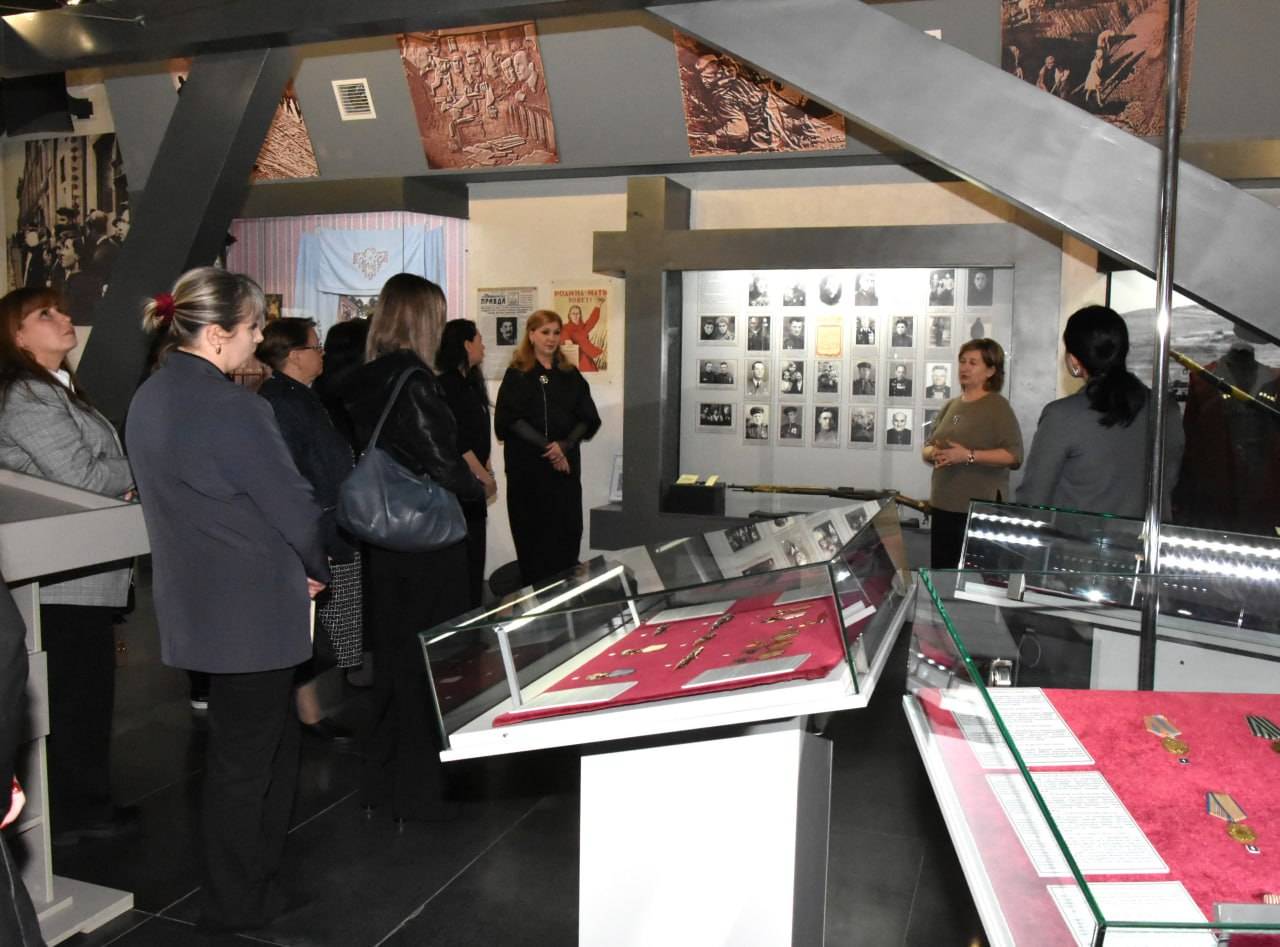 В рамках мероприятия состоялась встреча с Заместителем председателя Государственного Совета – Хасэ Республики Адыгея, Героем России Эдуардом Цеевым. Участники ознакомились с тематической экскурсией по экспозиции в Нацмузее РА «Адыгея в годы Великой Отечественной войны», проведенной старшим научным сотрудником отдела новой и новейшей истории Национального музея РА Нелли Нагиевой. Встречу провела Первый заместитель Министра культуры, координатор федерального партийного проекта «Культура малой Родины» партии «Единая Россия» в Адыгее Ольга Гавшина. Участие приняли ответственные за воспитательную работу в подведомственных учреждениях культуры Адыгеи, сотрудники Министерства культуры Республики Адыгея, а также представители регионального отделения Общероссийской общественно-государственной организации «Российское военно-историческое общество», возглавляемой Министром культуры РА Юрием Аутлевым.