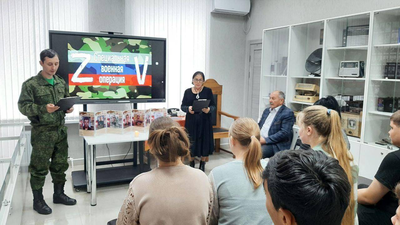 6 декабря в Келермесском музее истории казачества прошел тематический вечер «Герои нашего времени», посвященный Дню Героев Отечества. В ходе мероприятия учащиеся СОШ №8 имени В. Солдатенко, прослушали рассказ о том, когда и почему началась Специальная военная операция на Украине, о мужестве и героизме военнослужащих, участвующих в ней, об их подвигах и верности Родине, узнали о героях нашего времени, земляках участниках СВО которые погибли, выполняя свой воинский долг. Рассказ сопровождается показом видео презентации. В конце мероприятия почтили минутой молчания память тех, кто погиб при исполнении воинского долга, защищая Родину.