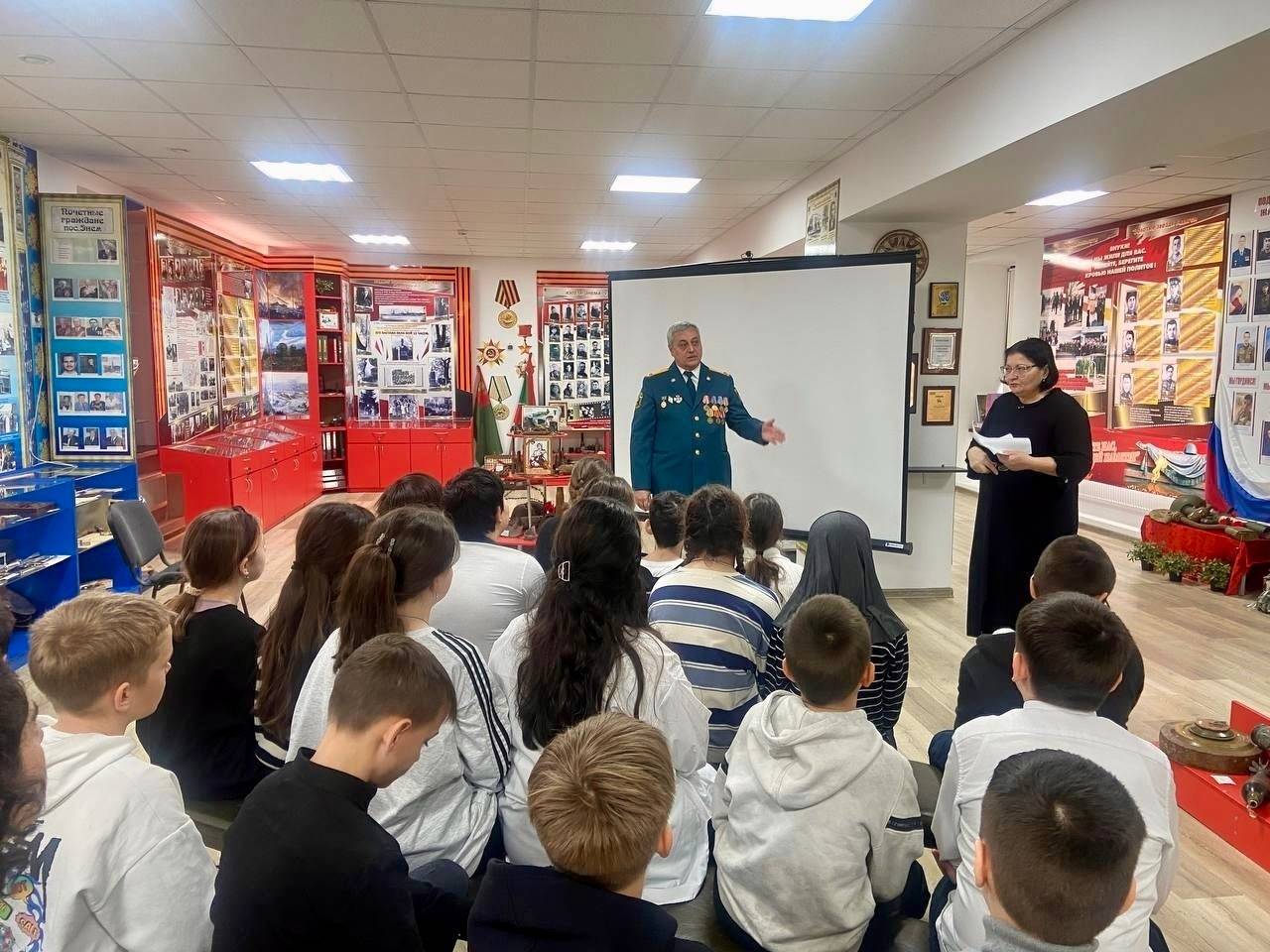 Участниками мероприятия стали учащиеся МБОУ «СШ № 25» 5 «В» класса ( Кл. рук. Байрамханова С. Г. ), почетным гостем стал подполковник внутренней службы в отставке Богус Аслан Калаубатович. Перед пенсией был начальником отделения надзорной деятельности Главного управления МЧС России по Республике Адыгея в г. Адыгейске и Теучежском районе. На уроке детям расскали о подвигах советских военнослужащих, их мужестве и стойкости в сложных условиях горной войны. Показали документальные видеосюжеты, архивные материалы и фотографии, оружие. Аслан Калаубатович поделился своими воспоминаниями из рассказов его друзей-афганцев с молодым поколением. Рассказал о своих переживаниях, о том, как они исполняли свой долг, и о том, какие уроки жизни они извлекли из своего опыта. Такие встречи помогают детям лучше понять значение героизма, мужества и дружбы.