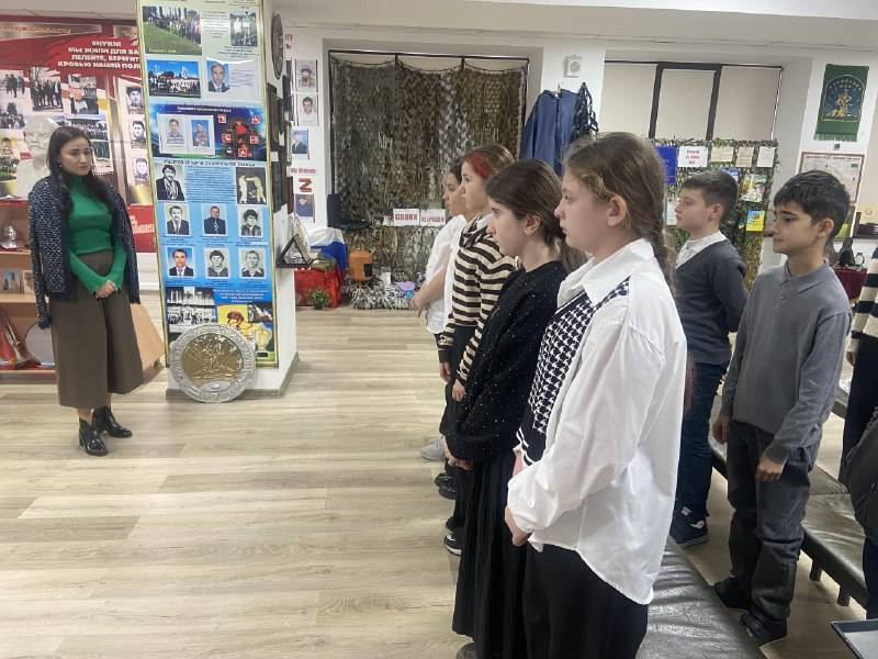 9 декабря наша страна отмечает День Героев Отечества. В этот день чествуют Героев Советского Союза, Героев Российской Федерации, кавалеров ордена Святого Георгия и ордена Славы. К этой памятной дате в музее был проведен урок мужества «Гордимся славою Героев». Гостями стали ученики МБОУ №25, 5 «В» класса (сопровождающая кл. рук. Байрамханова С. Г. ).