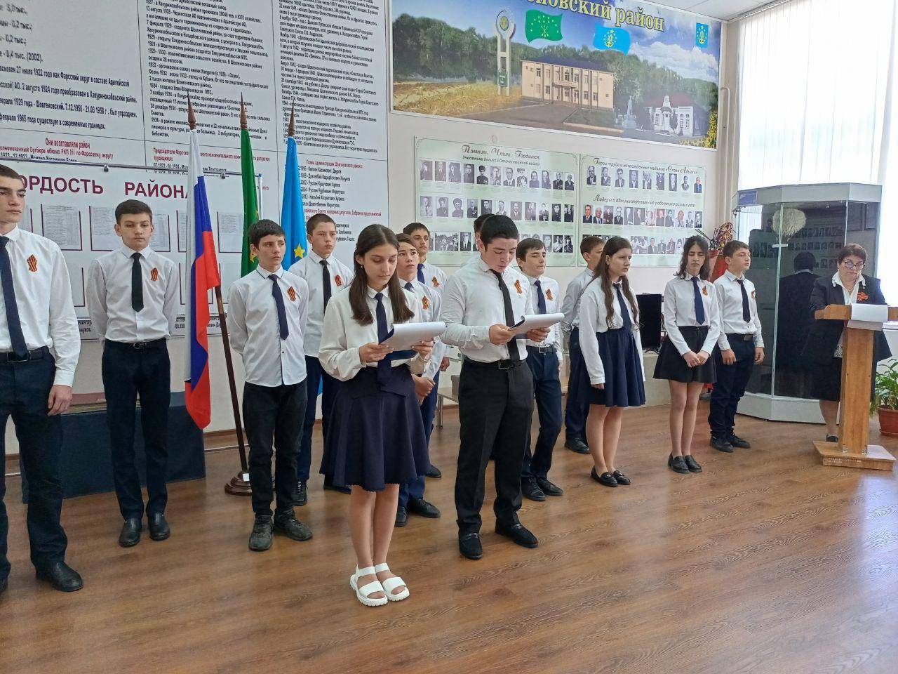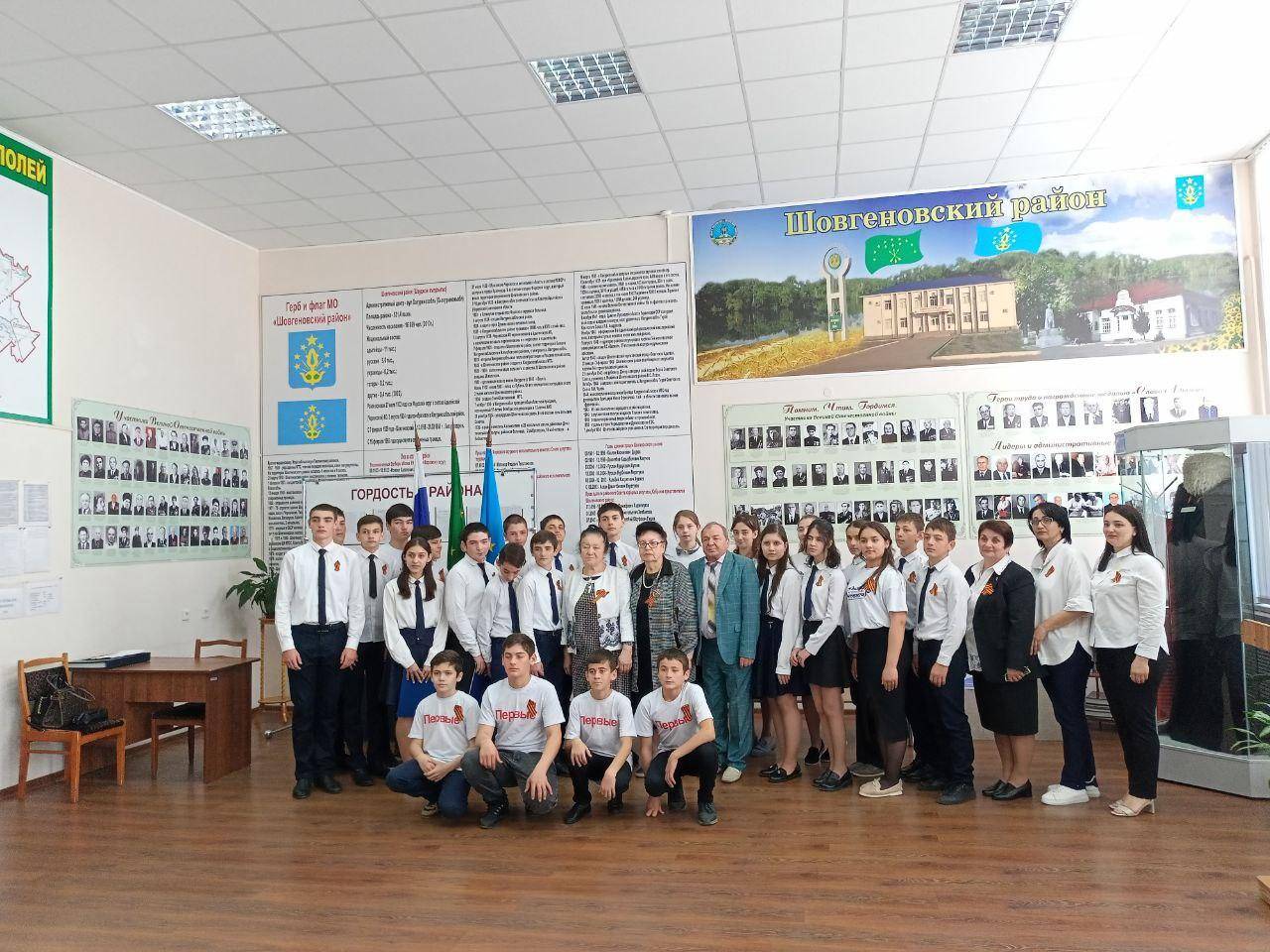 6 мая 2024 года в Шовгеновском краеведческом музее прошел урок мужества «Огонь войны души не сжег» приуроченный к 79-й годовщине Победы в Великой Отечественной войне. Принимали участие учащиеся 8-х классов Хатажукайской средней школы. На мероприятие были приглашены председатель Совета ветеранов войны и труда Юсупов Тагир Шагибович, член Общественной палаты при главе Республики Адыгея, председатель Союза женщин Шовгеновского района Куваева Лидия Магаметовна, председатель общество инвалидов Шовгеновского района Эльдарова Мариет Чиназовна, работники образования, культуры, пресса.
