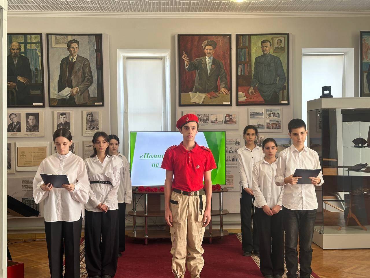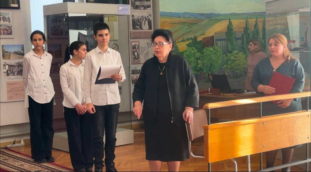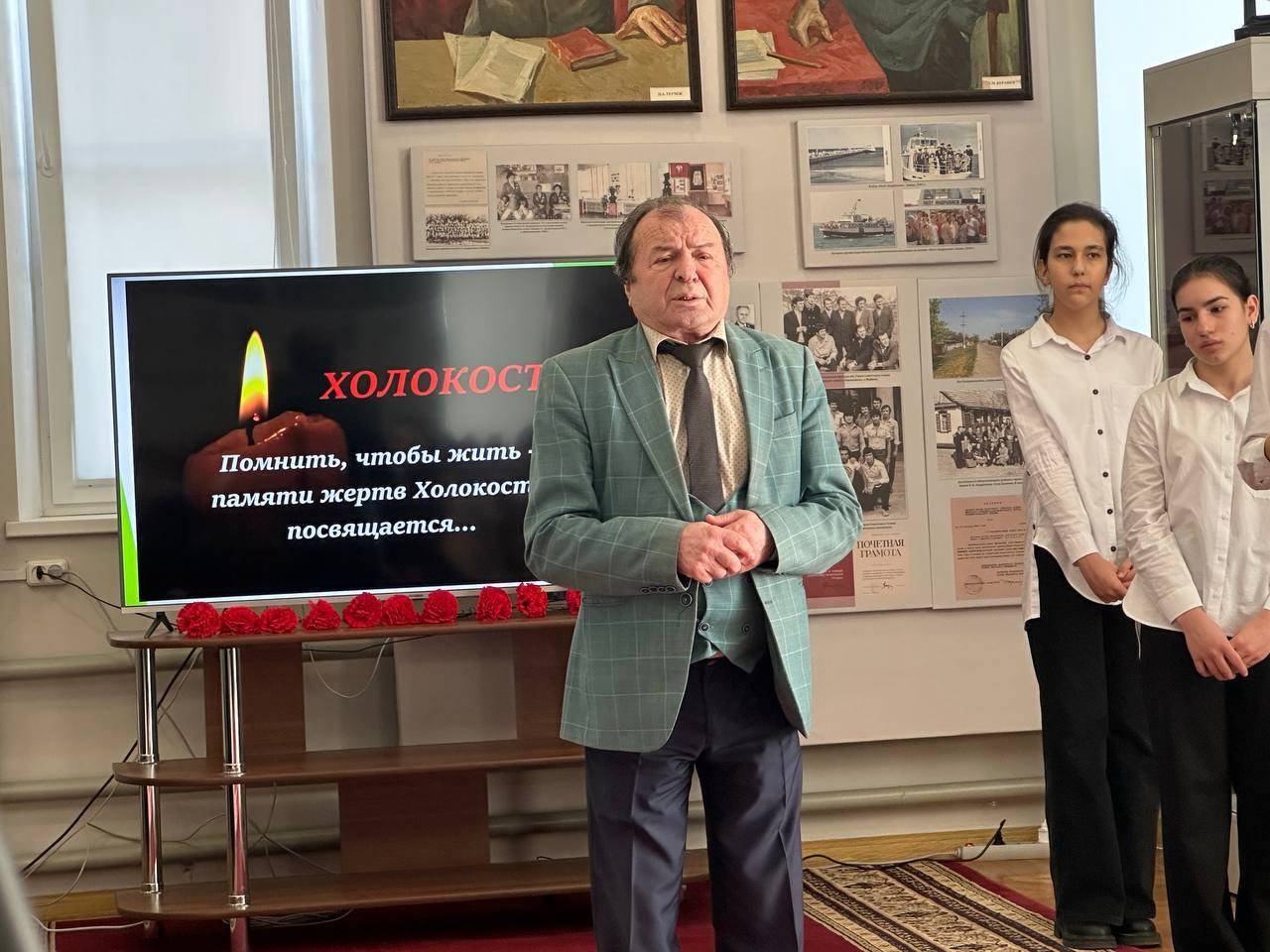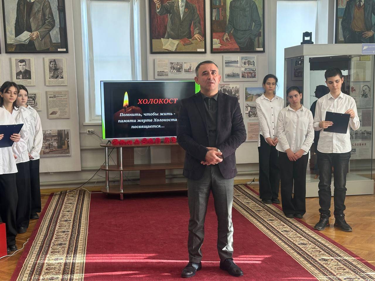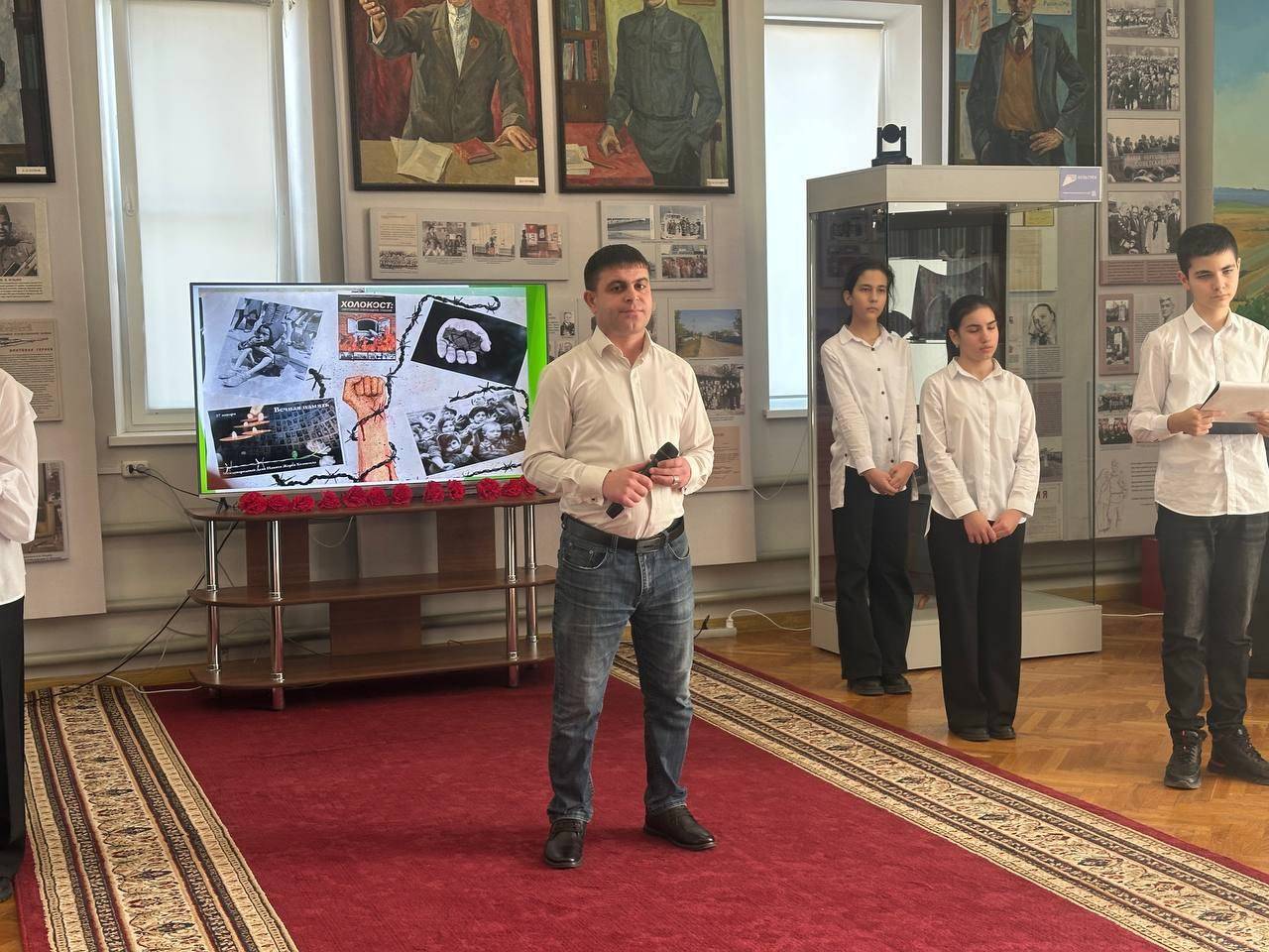 27 января сотрудники музея Х.Б.Анрухаева совместно с учениками 10 класса Хакуринохабльской СОШ №1 и работниками РЦНК провели урок мужества "Помнить и никогда не забывать" - посвященый дню памяти жертв Холокоста. На мероприятие были приглашены Председатель Союза женщин Шовгеновского района, Почётный гражданин Шовгеновского района Куваева Л.М., Представитель Совета ветеранов Шовгеновского района Юсупов Т.Ш., учащихся Хакуринохабльской СОШ 1, работники библиотечной системы Шовгеновского района.