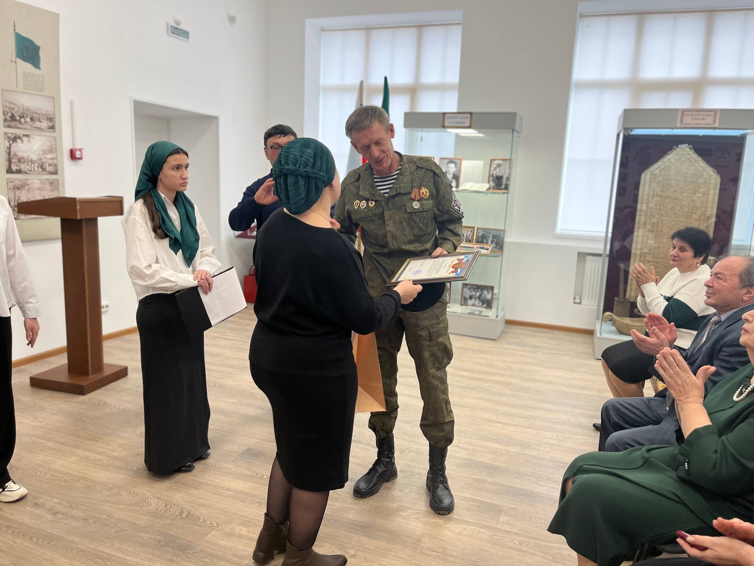 В знак признательности за мужество, доблесть, героизм и патриотизм заведующая музеем Тлишева Фатима вручила Геннадию Набокову благодарность и памятный подарок от сотрудников музея в честь Дня защитника Отечества. Директор автономной некоммерческой организации социального обслуживания населения «ДОБРОТА» Аминет Меретукова присоединилась к поздравлениям, вручив ветерану памятный подарок. Урок мужества не только предоставил участникам возможность ознакомиться с героическими поступками защитников Отечества, но и стал поводом для обсуждения значимости патриотического воспитания в современном обществе.