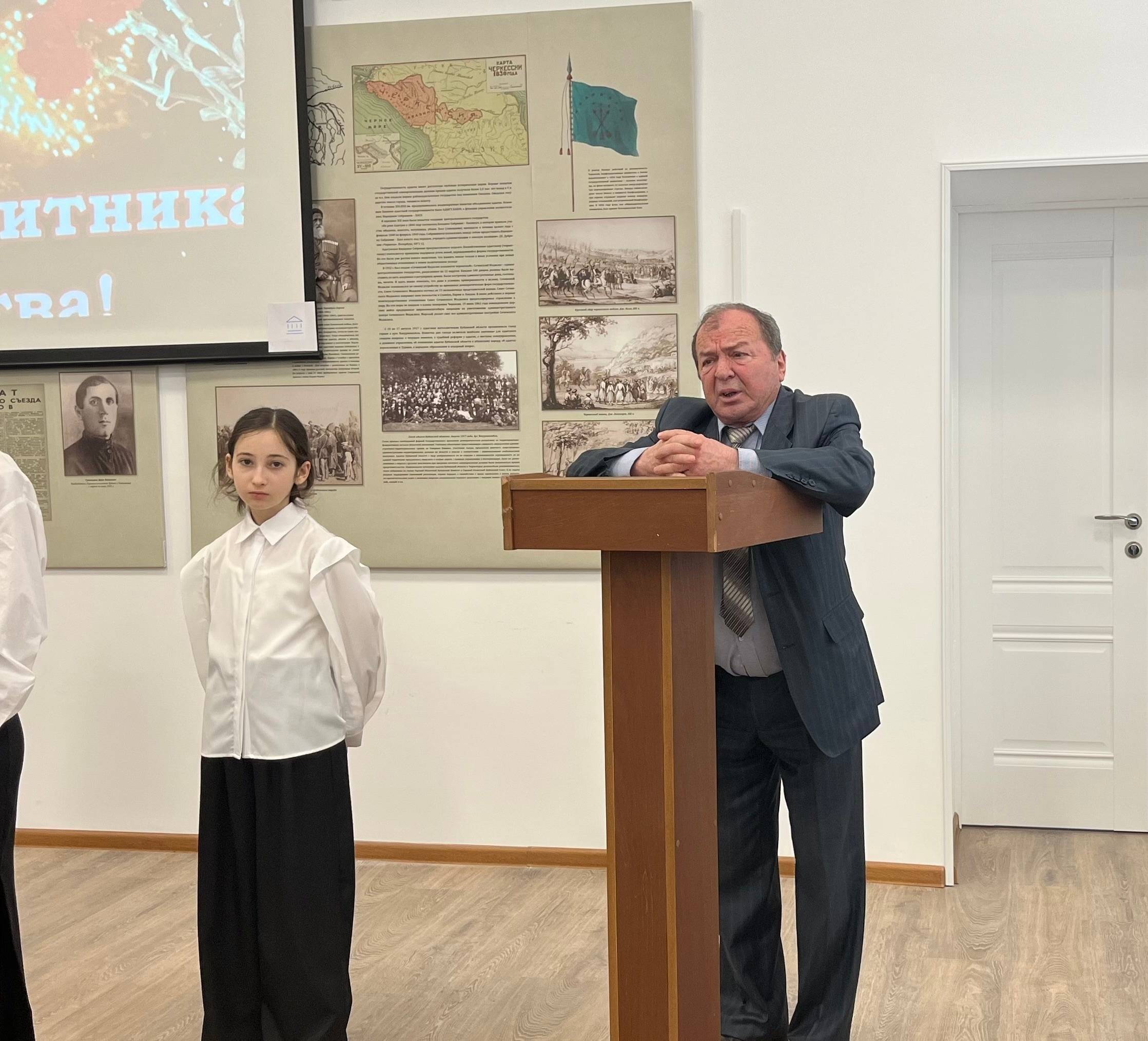Участниками урока мужества стали учащиеся Мамхегской средней общеобразовательной школы №4 и учащиеся Шовгеновской школы искусств, а также их преподаватели Химишокова Эмма Аслановна и Мирзова Ася Хамедовна. Почетными гостями мероприятия были руководитель Шовгеновского районного филиала Союза женщин Адыгеи Куваева Лидия Магаметовна, председатель Совета ветеранов Шовгеновского района Юсупов Тимур Шагибович и ветеран боевых действий, участник специальной военной операции Набоков Геннадий Викторович. Каждый из почетных гостей выступил с речью, в которой подчеркнул важность сохранения исторической памяти и призвал молодежь быть достойными наследниками подвигов своих предков. Геннадий Набоков также поделился с участниками мероприятия своим опытом и подчеркнул значимость воинского долга.