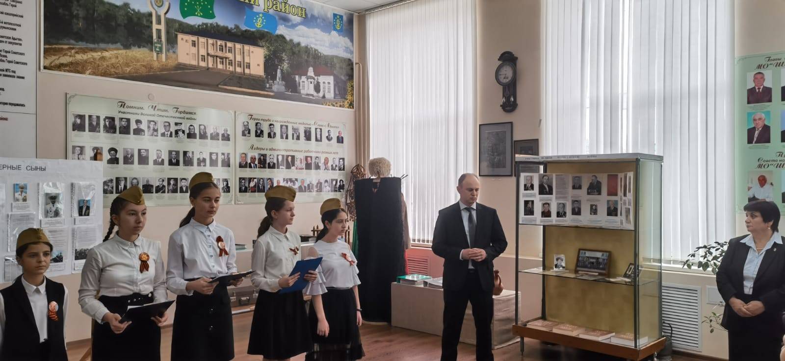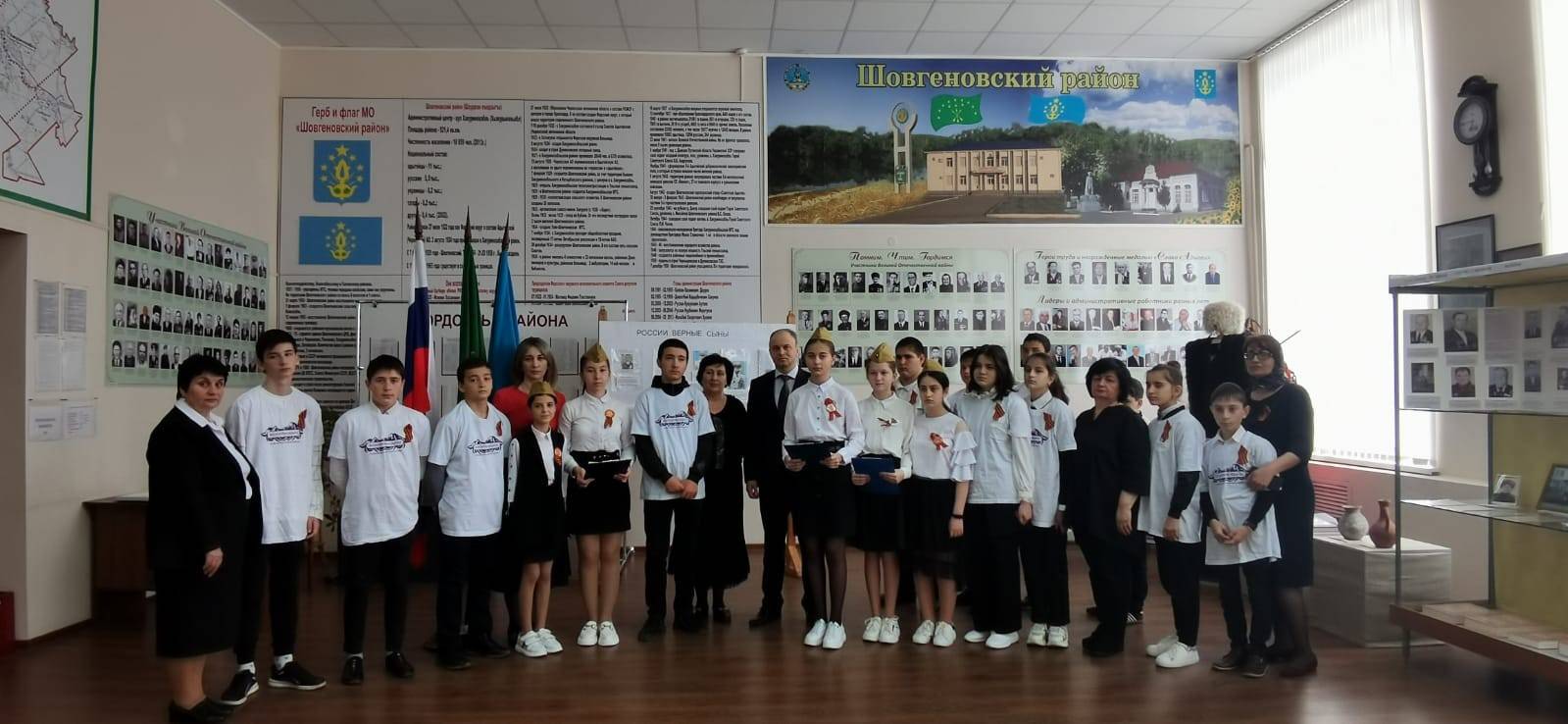 6 мая 2022 г. в мемориальном музее Героя Советского Союза Х.Б. Андрухаева был проведён урок мужества «Мы помним! Мы гордимся!», посвященный знаменательной дате – Великой Победе Советского народа над гитлеровской Германией. В проведении мероприятия приняли участие учащиеся Мамхегской СОШ №4, воспитанники Детской школы искусств Шовгеновского района. На мероприятии присутствовали сотрудники правоохранительных органов Шовгеновского района, работники ЦБС, СЭС, учащиеся Чернышевской и Мамхегской средних школ. Всего присутствовало 76 человек. Также в Шовгеновском районном краеведческом музее 6 мая 2022 г. прошёл урок мужества «Минувших лет живая память» - ко Дню Великой Победы. Активное участие в мероприятии приняли учащиеся Хатажукайской средней школы. На мероприятии присутствовали зам.главы Шовгеновского района Аутлев А.З., зам. начальника управления культуры Тлюстангелова З.Б., учащиеся Хакуринохабльской СОШ №1. Всего на мероприятии присутствовало 49 человек.