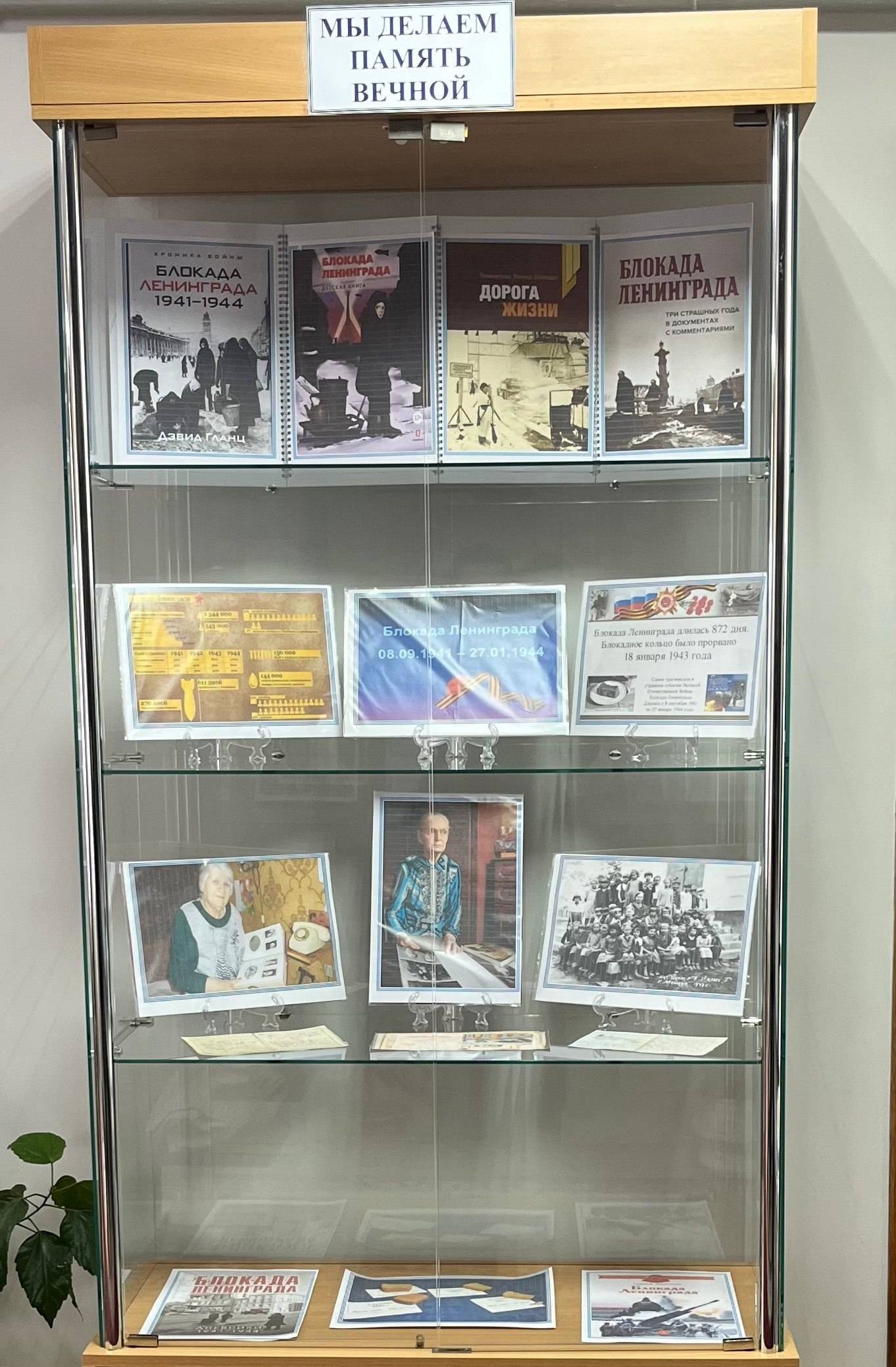 Выставка «Мы делаем память вечной», организованная в Мемориальном музее имени Героя Советского Союза Х. Б. Андрухаева, посвящена судьбам людей, переживших блокаду Ленинграда, и тех, кто сражался за освобождение города. Экспозиция демонстрирует мужество и стойкость тех, кто отстоял родной город, а также память о тех, кто не дожил до светлого дня освобождения.