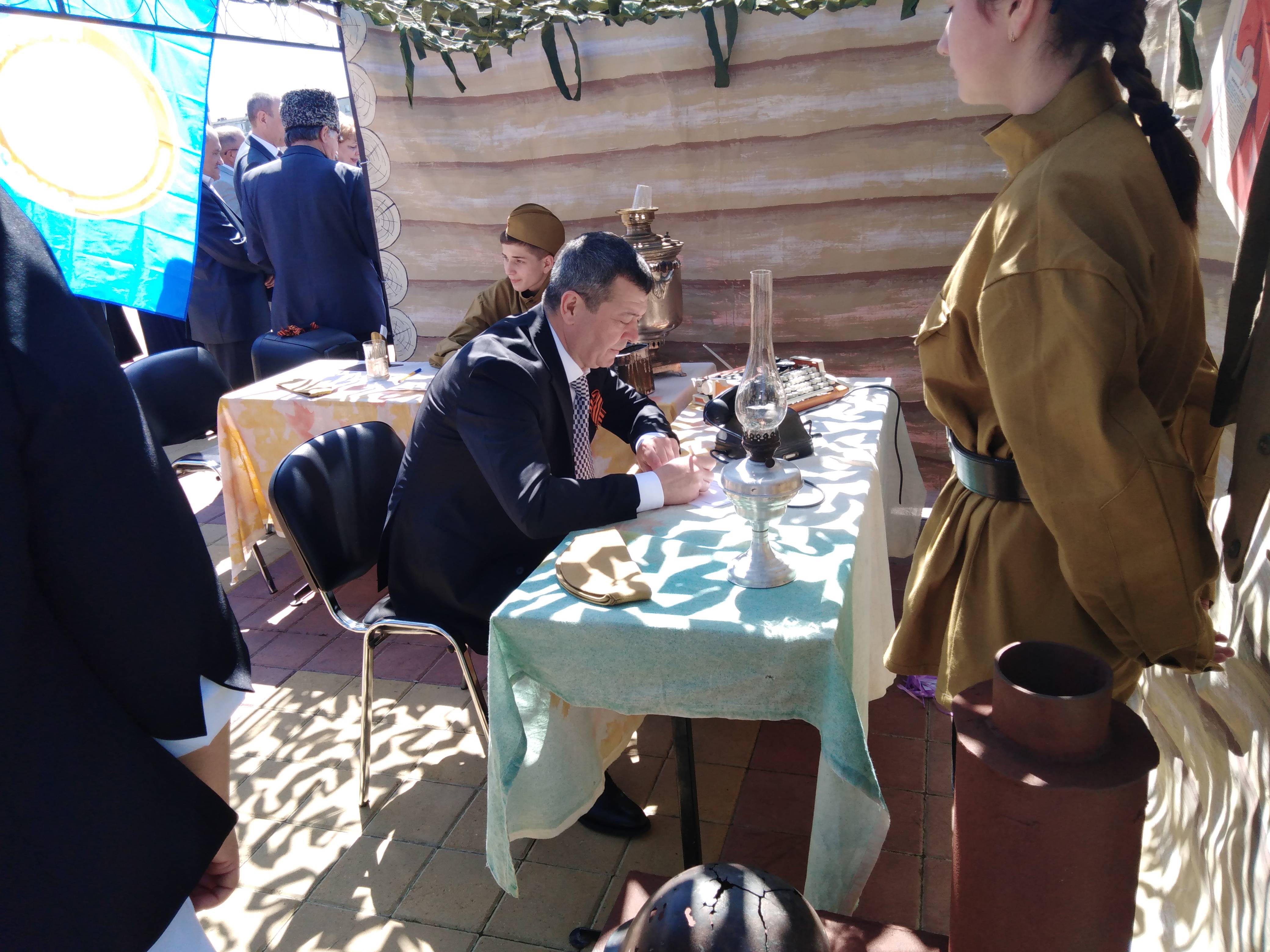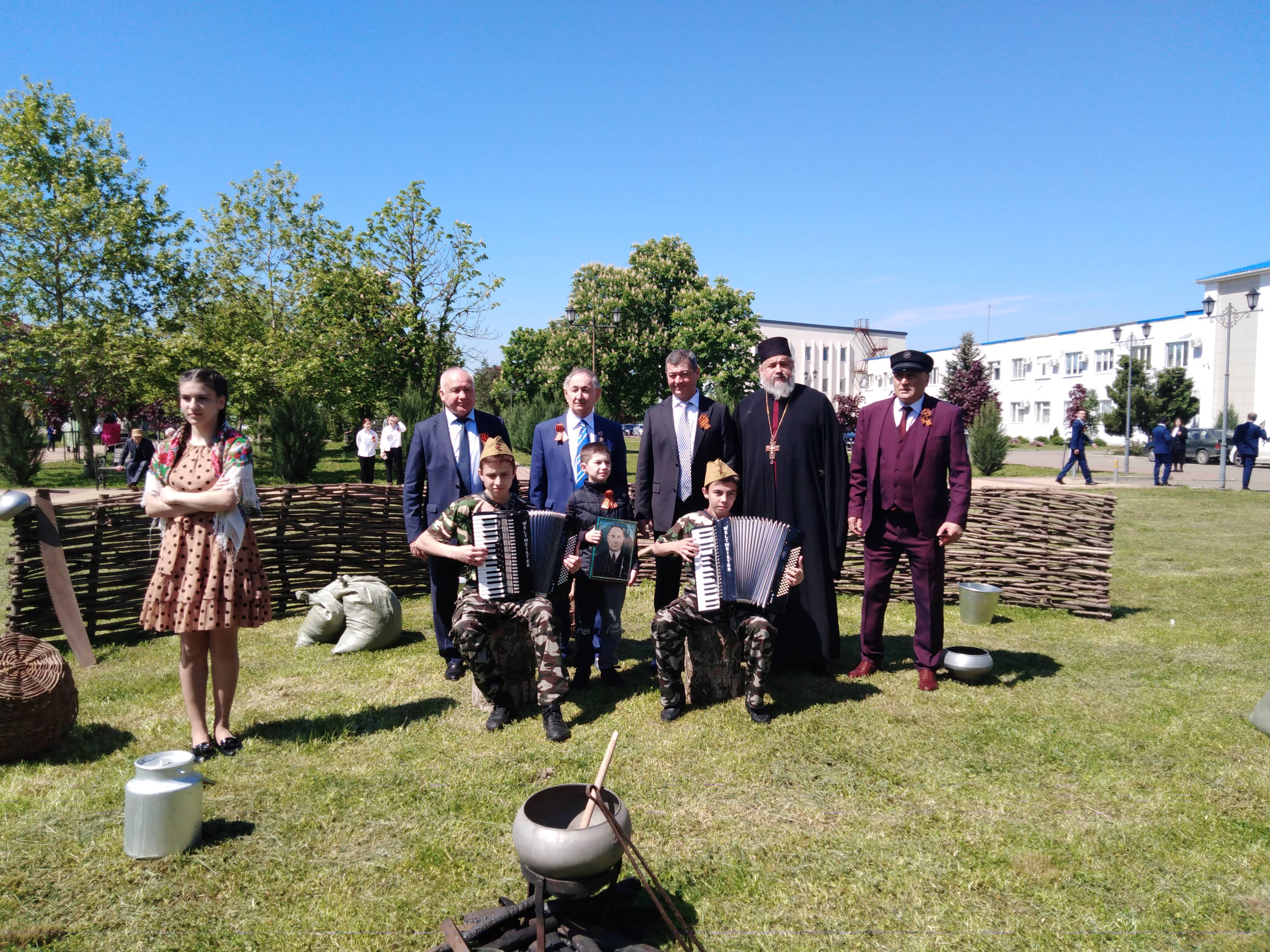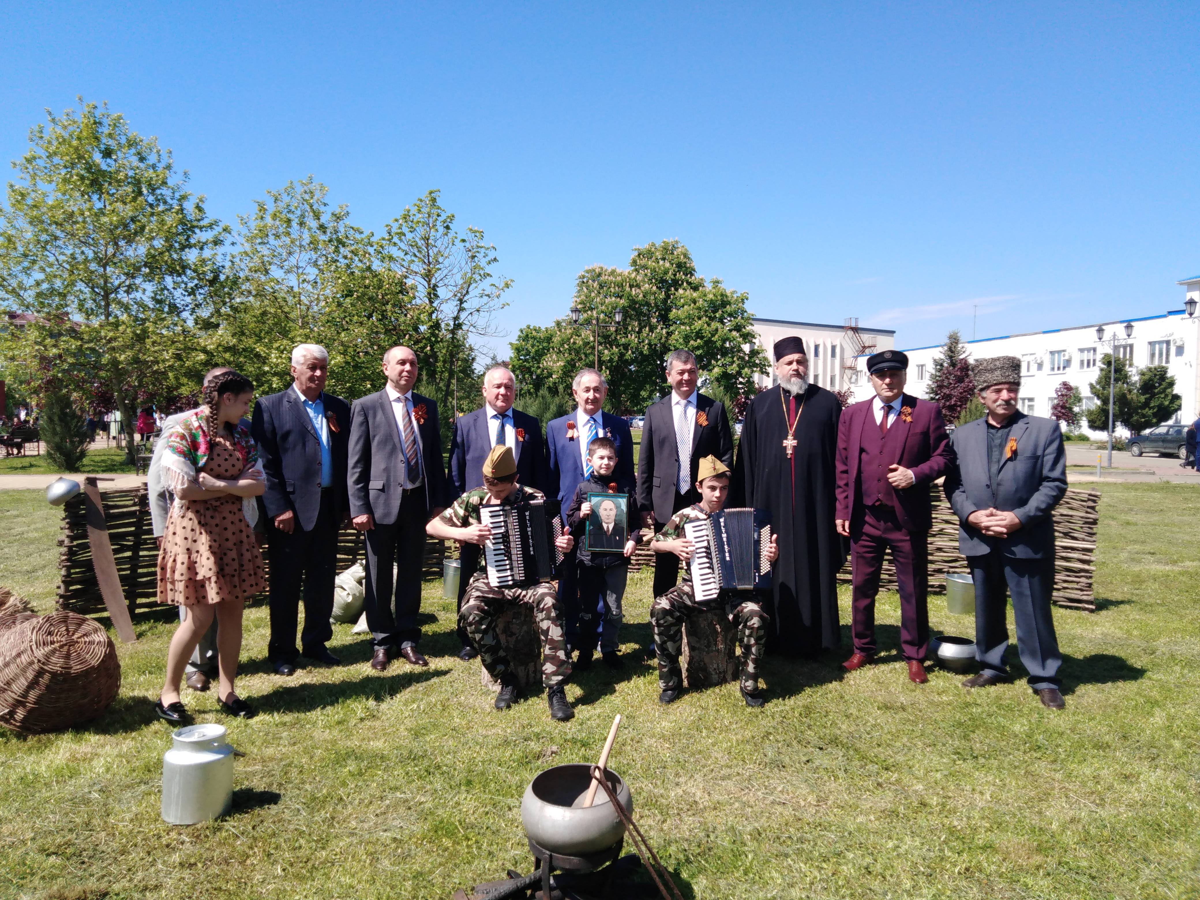 Для жителей и гостей города, на площади Центра народной культуры г. Адыгейска было оформлено подворье в виде реконструкции медицинского пункта и землянки периода Великой Отечественной войны. Здесь были выставлены экспонаты из фондов краеведческого музея г. Адыгейска, которые погружали посетителей в атмосферу военных лет. Желающие фотографировались на память.