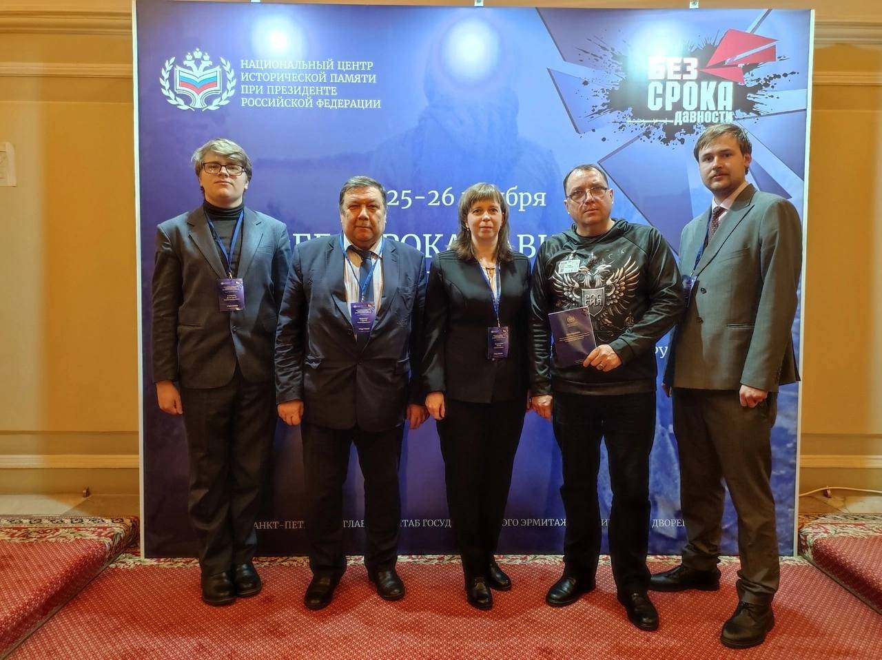 Вместе с коллегами из ПетрГУ 25 – 26 ноября профессор, доктор исторических наук, член Совета регионального отделения РВИО в Карелии Сергей Веригин принял участие в Международном юбилейном научно-практическом форуме «Без срока давности. Ключевая точка исторической памяти», который проходил в Санкт-Петербурге.