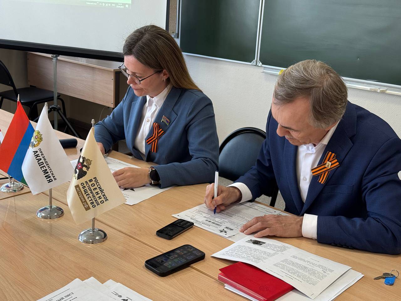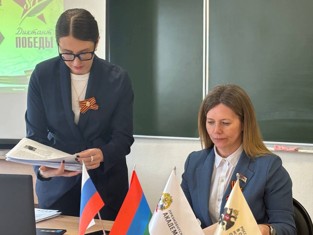 Участие в написании «Диктанта Победы» на данной площадке РВИО приняла Татьяна Тишкова, председатель Комитета по образованию, культуре, спорту и молодежной политике Законодательного собрания Республики Карелия, выпускник Президентской академии. «Вопросы диктанта были разными по уровню сложности, - отметила Татьяна Тишкова, - однако мы вместе со студентами с большим интересом проверяли свои знания и одновременно отмечали те страницы истории войны, которые являются малоизвестными. В Республике Карелия проводится большая и системная работа по сохранению памяти о подвиге поколения, на долю которого выпали тяжелейшие испытания – наш долг помнить об этих событиях и стараться делать все от нас зависящее, чтобы последующие поколения относились к этому ответственно и достойно».