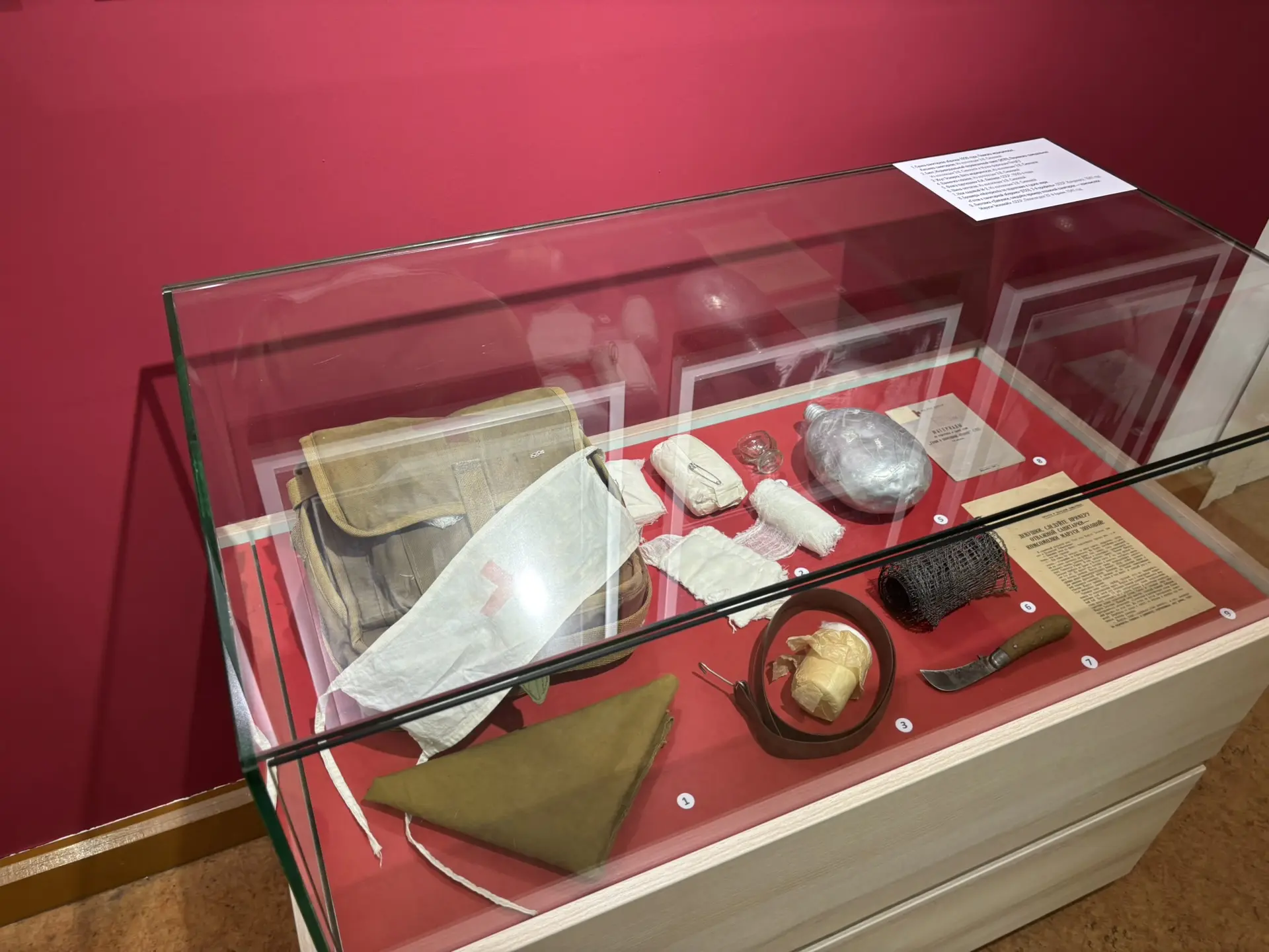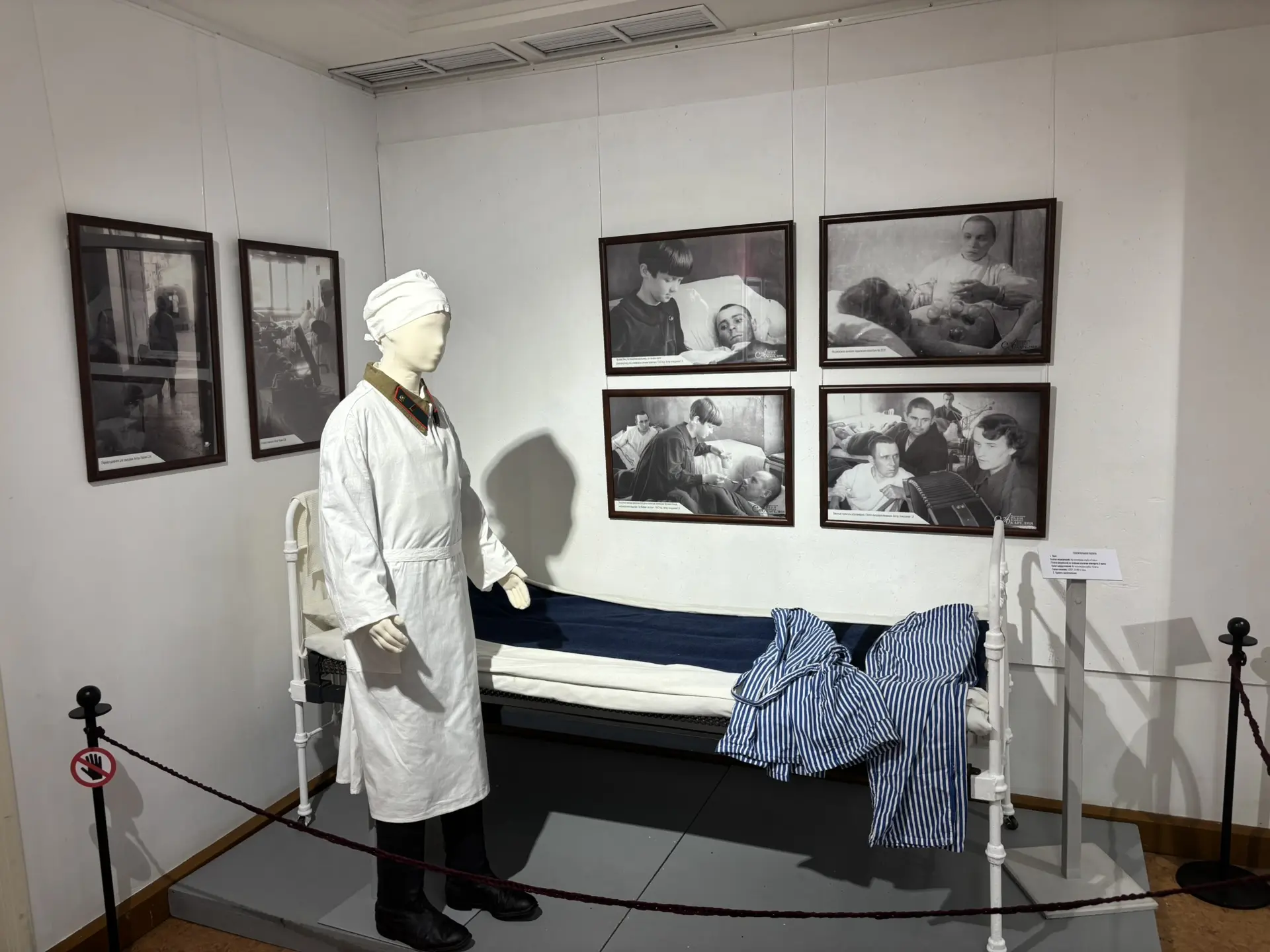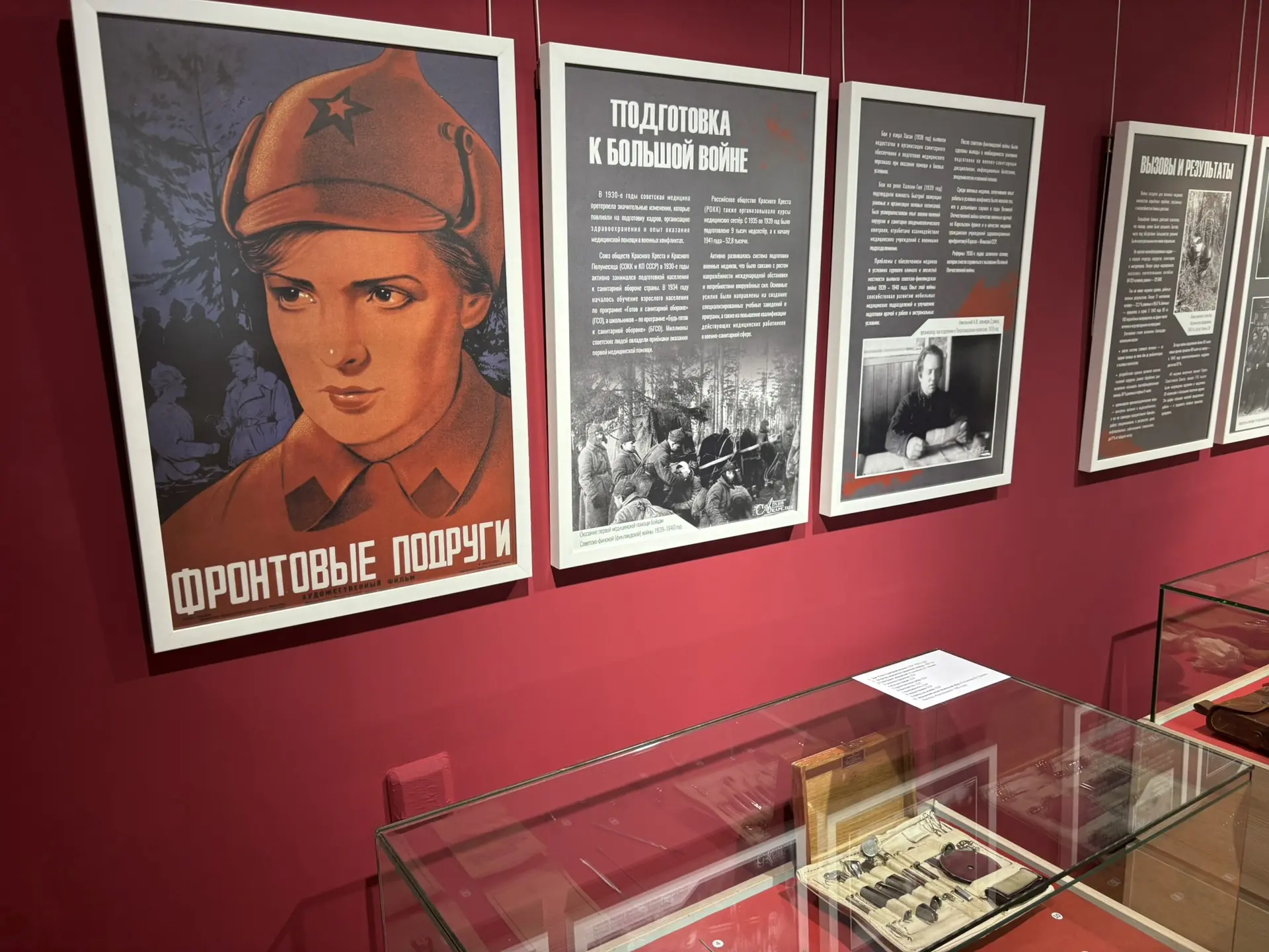 Представлены уникальные предметы и фотографии, рассказывающие о борьбе с травмами и болезнями воинов Красной армии. Особое внимание уделяется подвигу отдельных медицинских работников и их самоотверженному служению. На выставке подробно будет рассказано о врачах Михаиле Иссерсоне, Василии Баранове, Абраме и Константине Гуткиных, Александре Никольском, Александре Вишневском.