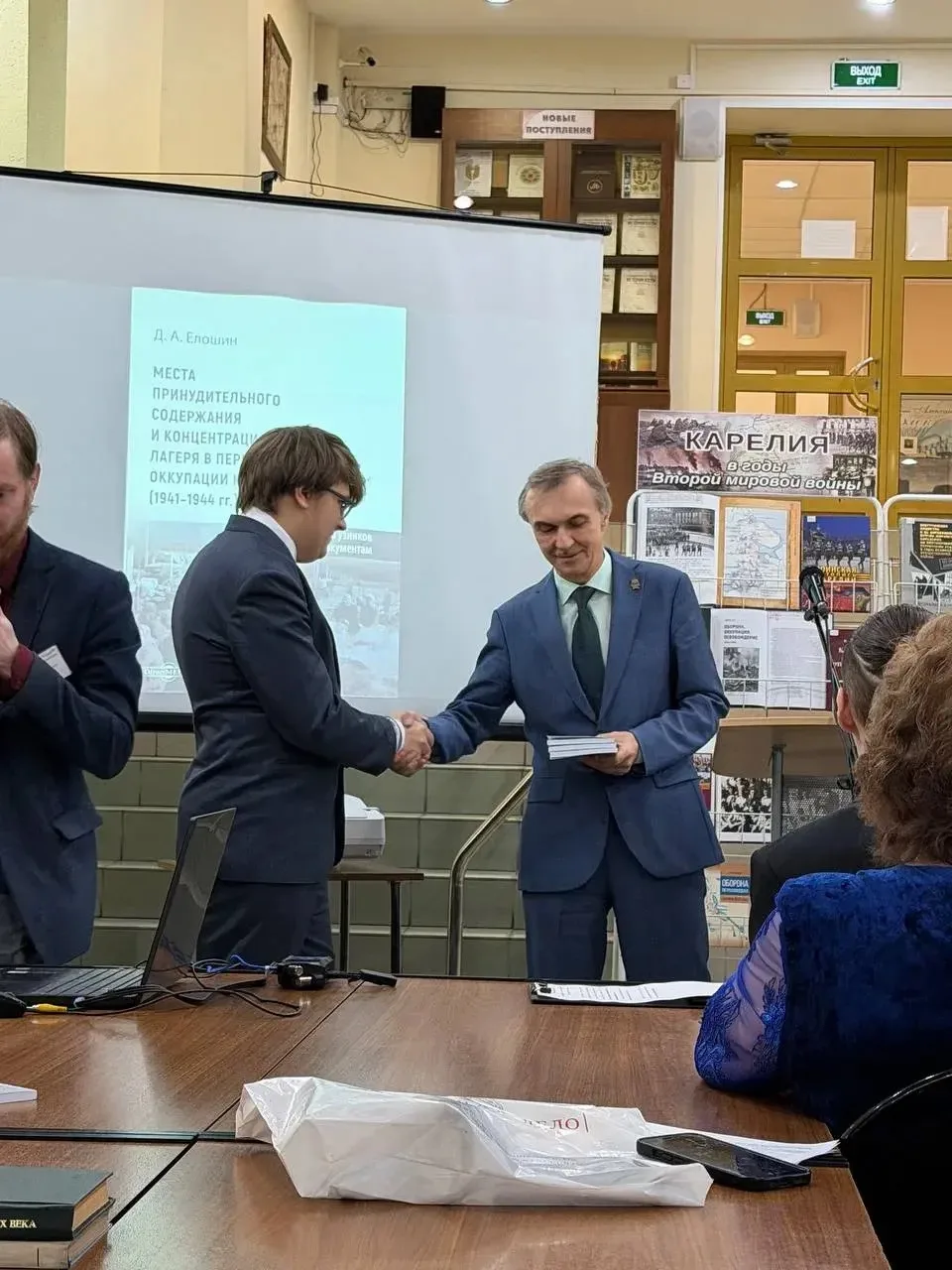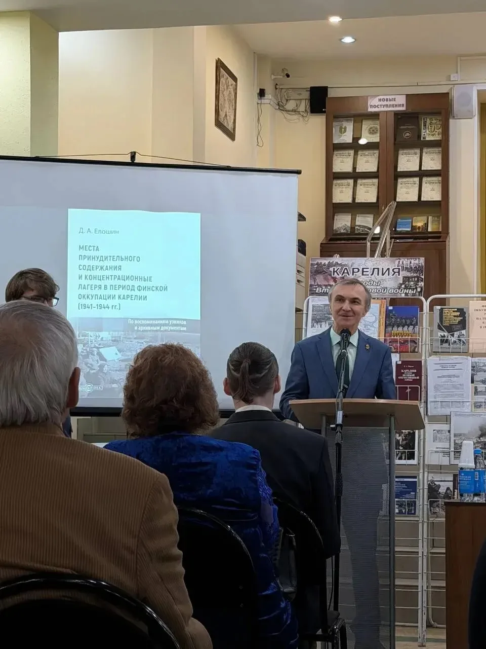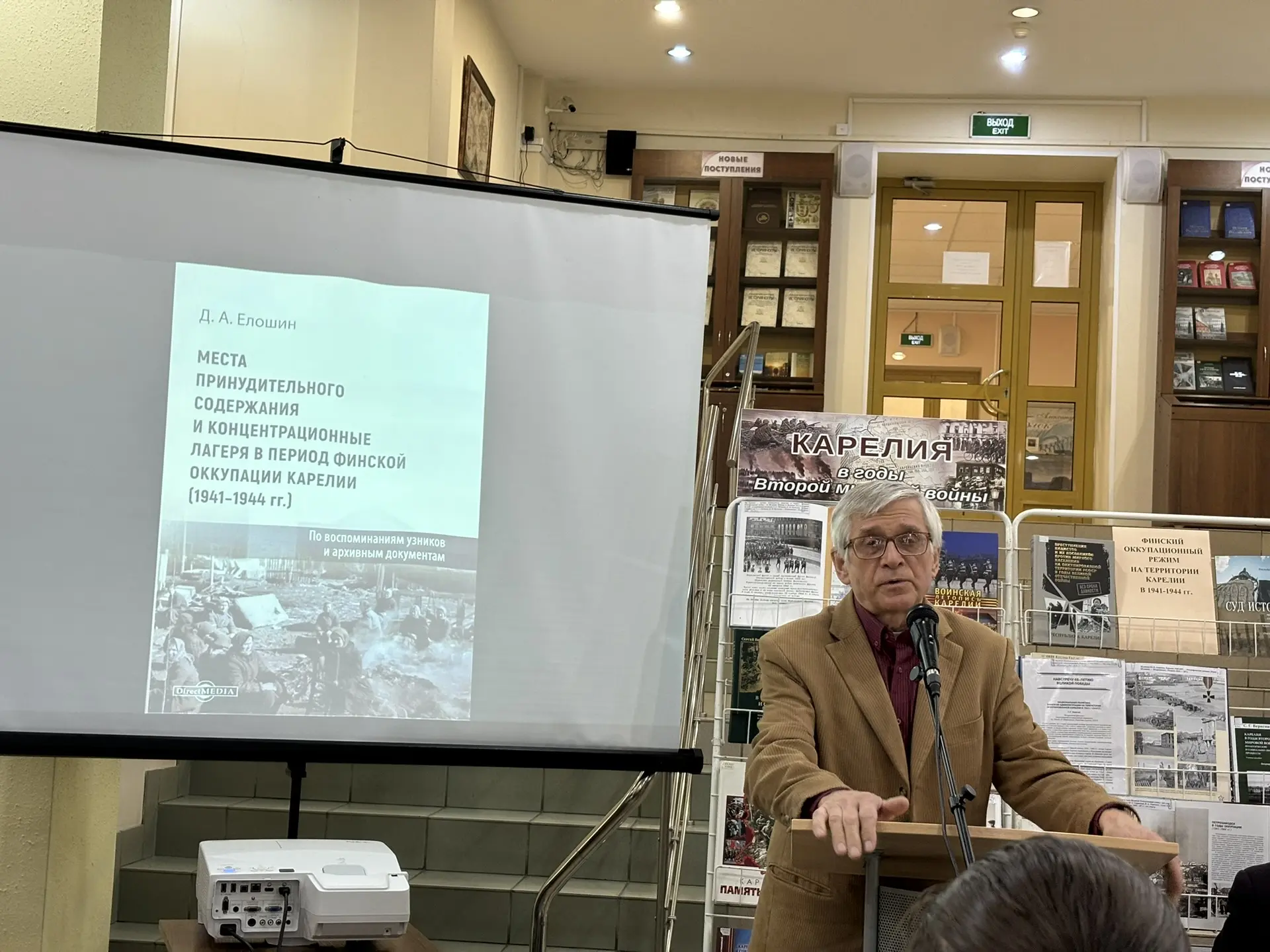 17 марта в библиотеке Петрозаводского государственного университета состоялась презентация монографии аспиранта, преподавателя Дмитрия Елошина «Места принудительного содержания и концентрационные лагеря в период финской оккупации Карелии (1941-1944 гг.): по воспоминаниям узников и архивным документам».