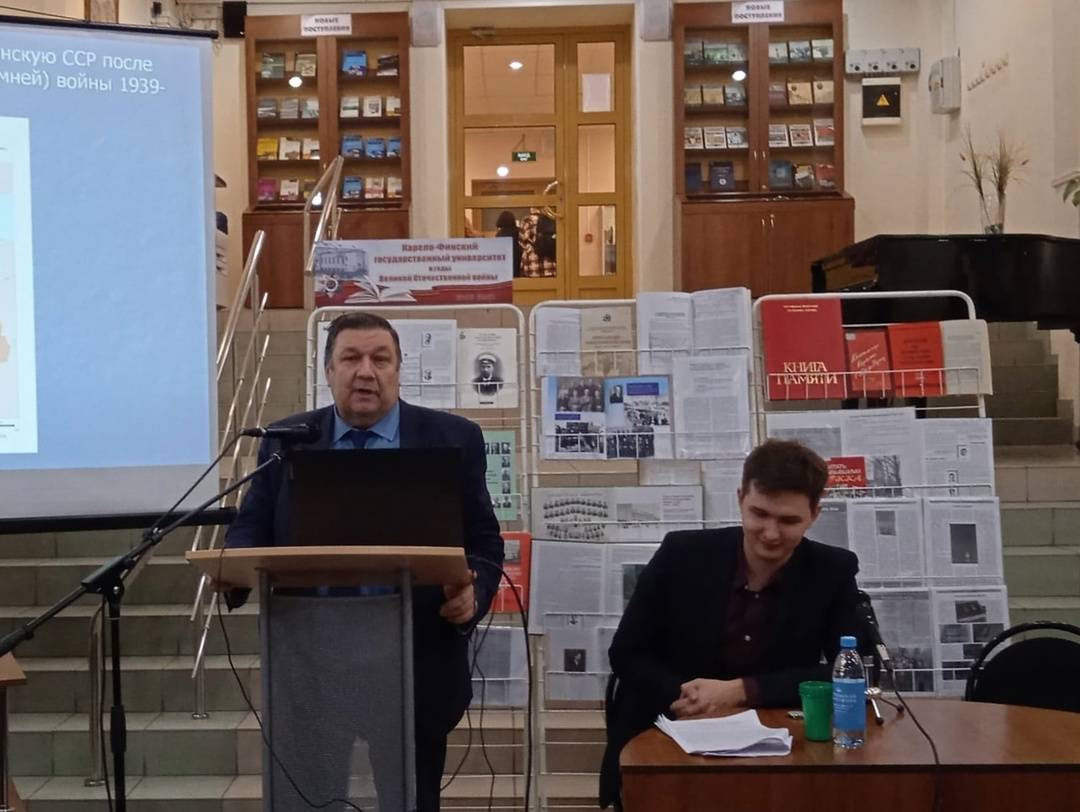 13 ноября в читальном зале научной библиотеки Петрозаводского государственного университета состоялся открытый семинар «Становление высшего образования в Республике Карелия. Работа университета в годы Великой Отечественной войны», организованный студенческим научным обществом (СНО) Института истории, политических и социальных наук ПетрГУ, членом Совета регионального отделения Российского военно-исторического общества, профессором, доктором исторических наук Сергеем Веригиным.