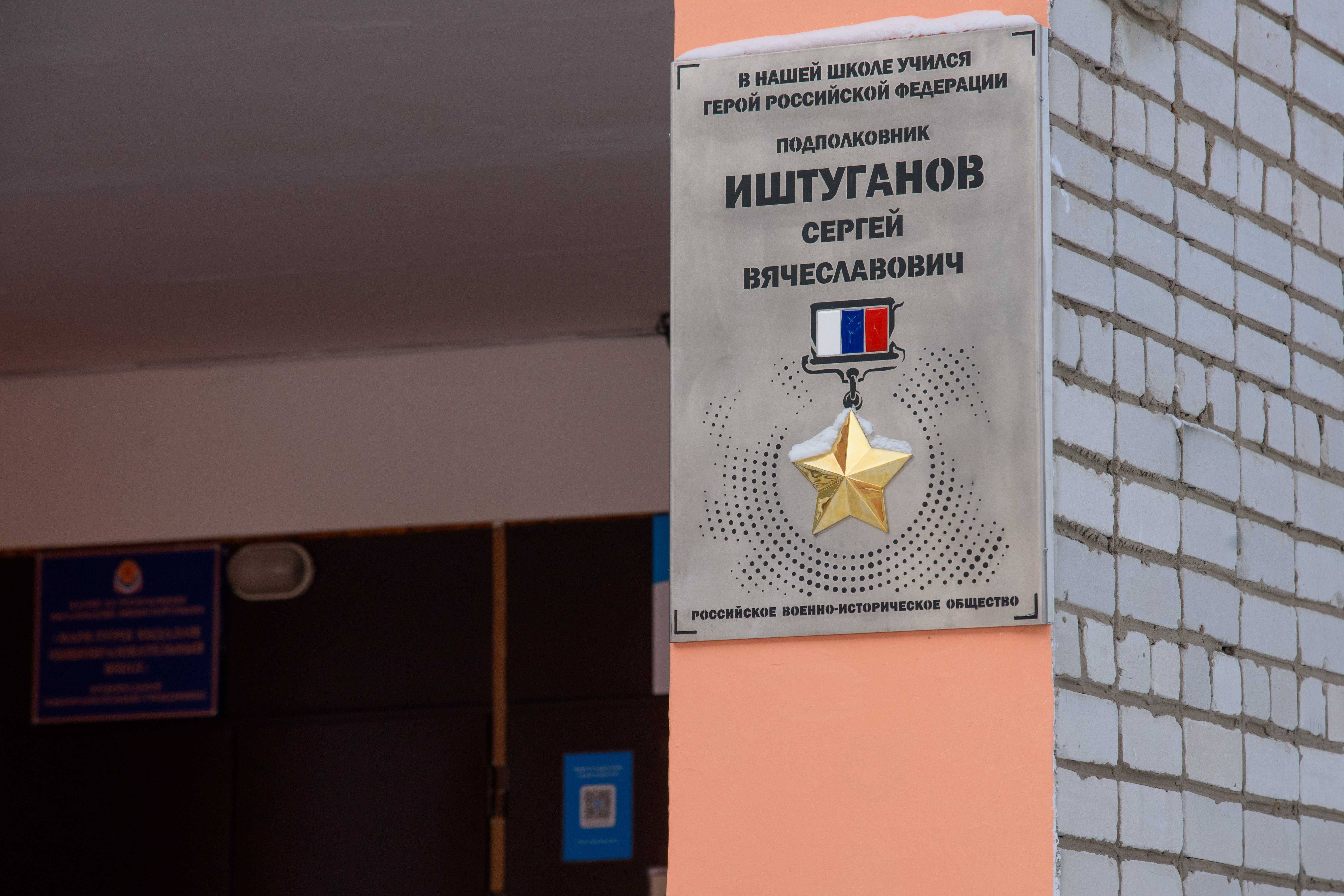 На фасаде Мари-Турекский средней школы благодаря поддержке Российского военно-исторического общества установили Доску Почета Герою России, гвардии подполковнику Сергею Иштуганову.