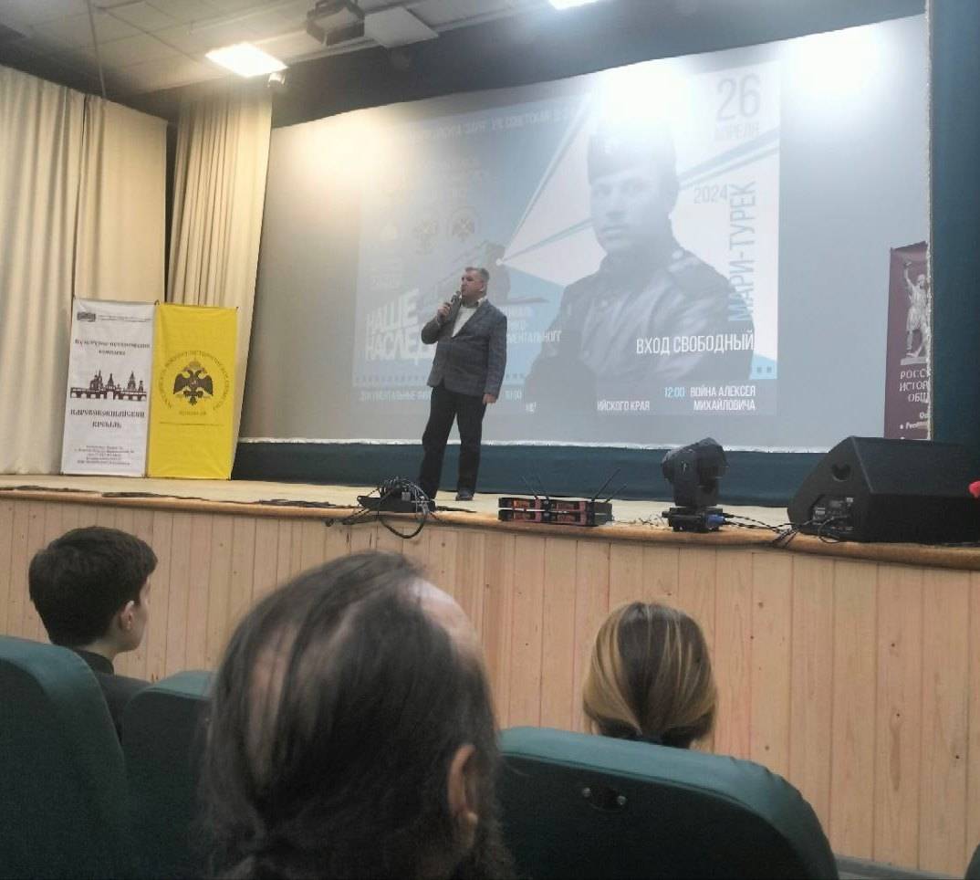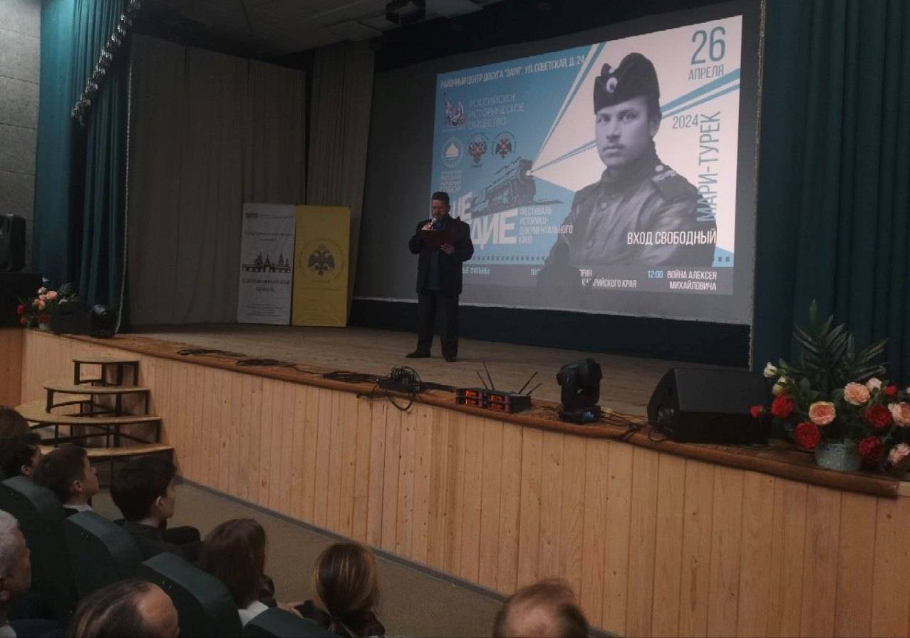 26 апреля в поселке Мари Турек в рамках Фестиваля историко-документального кино "Наше наследие" Региональным отделением Российского военно-исторического общества в Марий Эл, для жителей района, организован показ документального фильма "Николай Кириллович Кокорин - первый лётчик Марийского края".