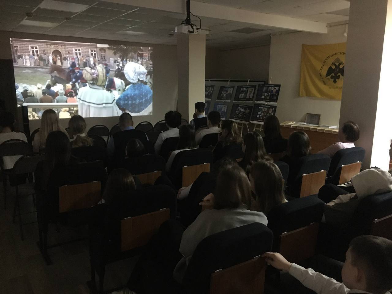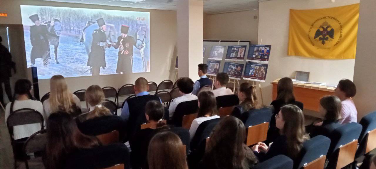 Цикл кинопоказов исторического и патриотического российского кино для школьников в Зале патриотического воспитания планируется проводить еженедельно, до конца учебного года.