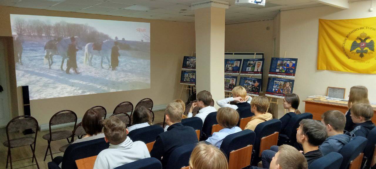 Цикл кинопоказов исторического и патриотического российского кино для школьников в Зале патриотического воспитания проводится на постоянной основе, до конца учебного года.