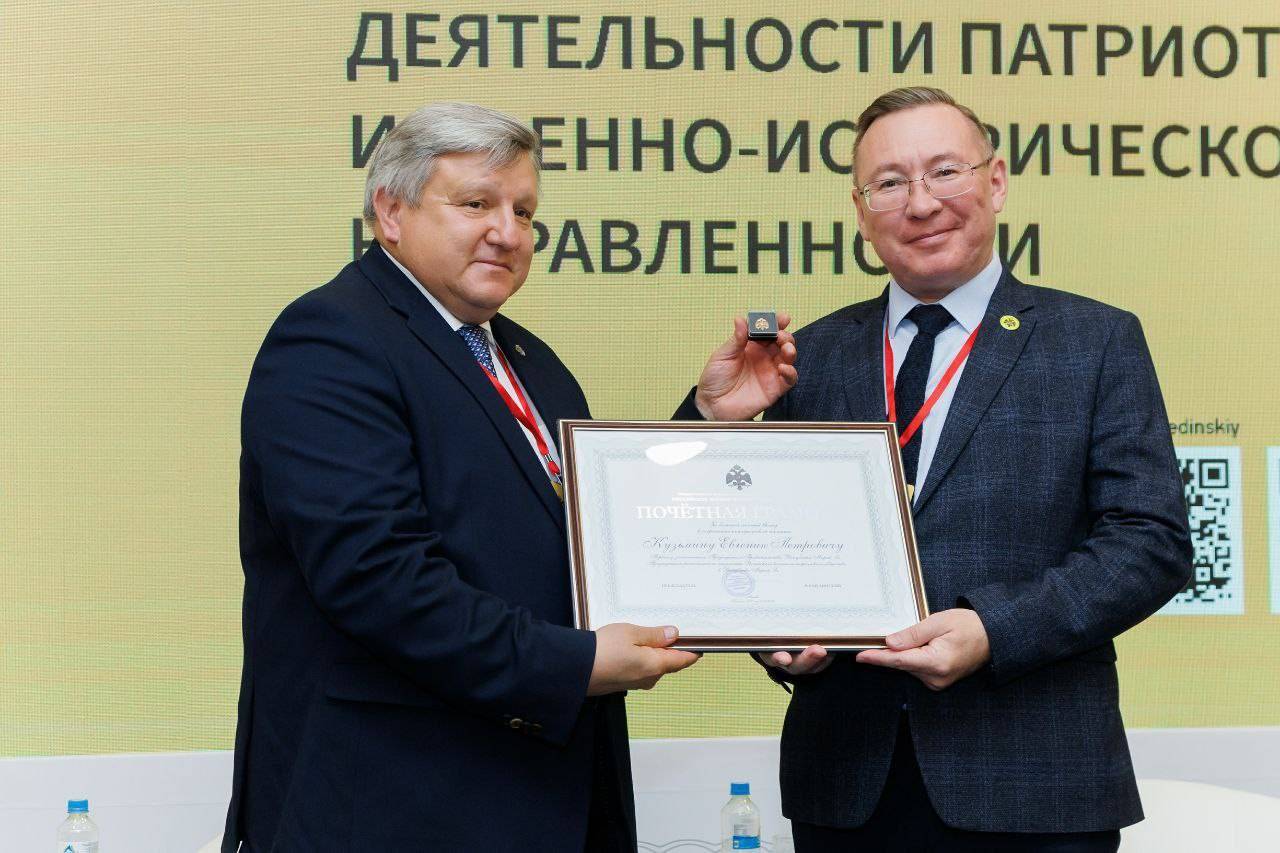 Евгению Кузьмину первому заместителя Председателя Правительства Республики Марий Эл, председателю РО РВИО в Республике Марий Эл в ходе семинара была вручена Почетная грамота за активную работу Регионального отделения.