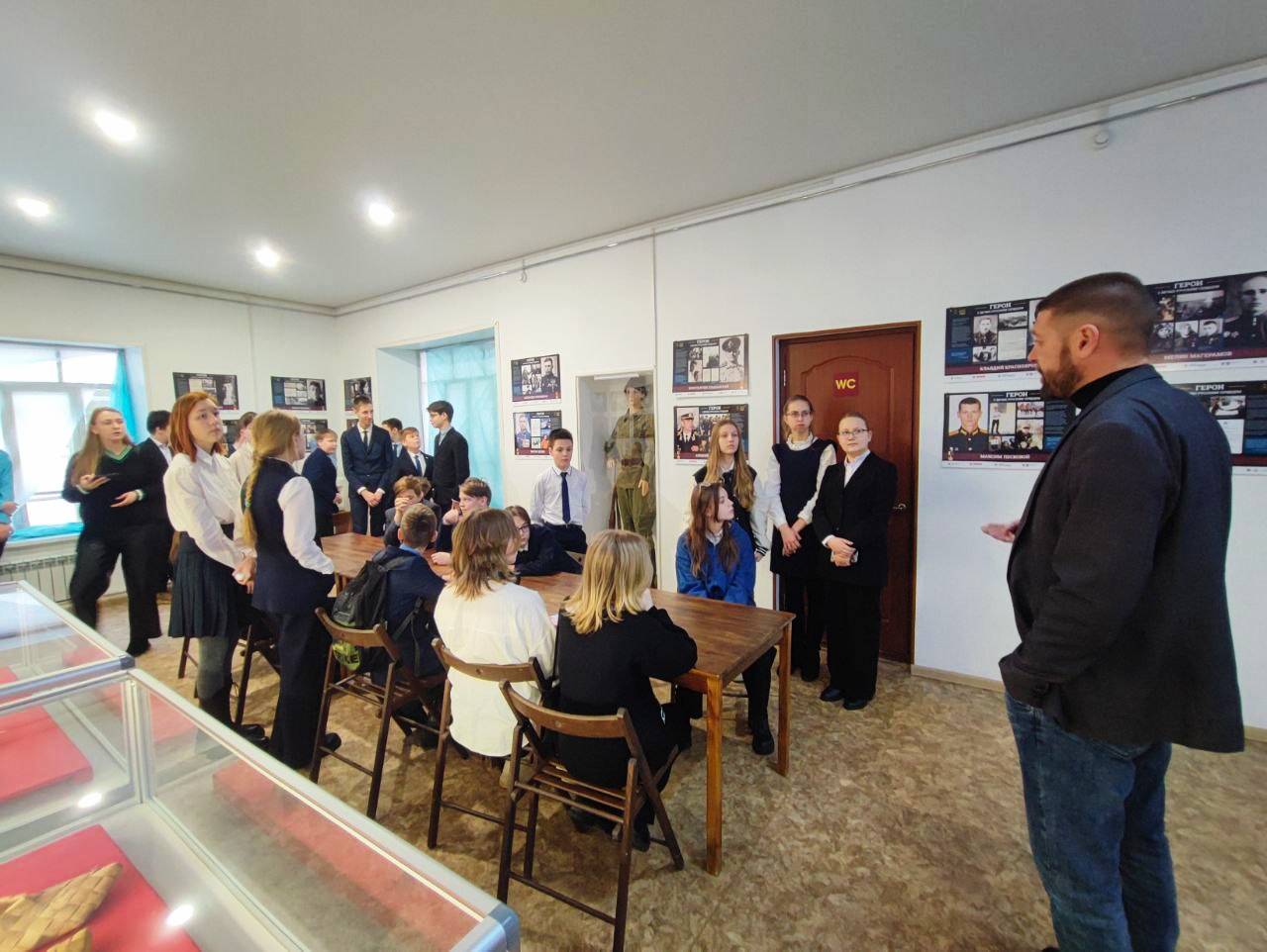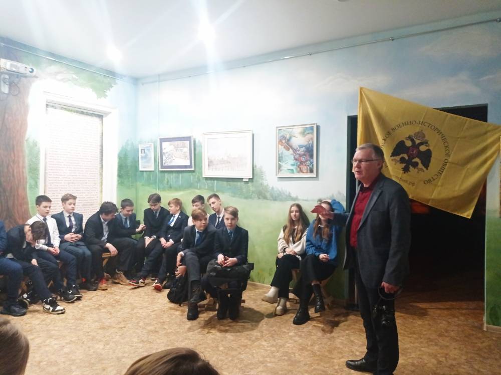 В завершение ученики ознакомились с выставкой "Герои с вечно русским сердцем", подготовленной МРО Российского военно-исторического общества.