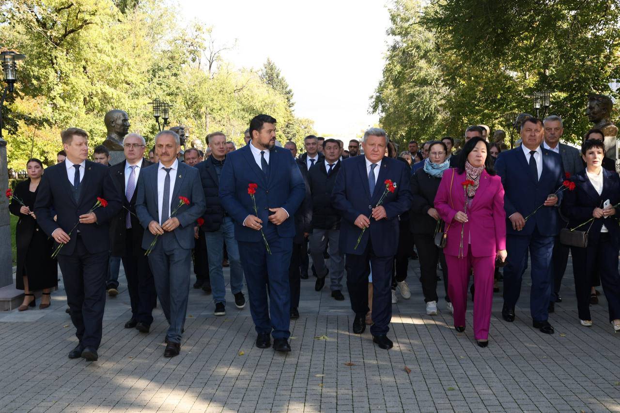 Перед началом мероприятий Семинара прошло возложение цветов к памятнику Советскому солдату – Победителю, открытому Российским военно-историческим обществом в 2018 году.