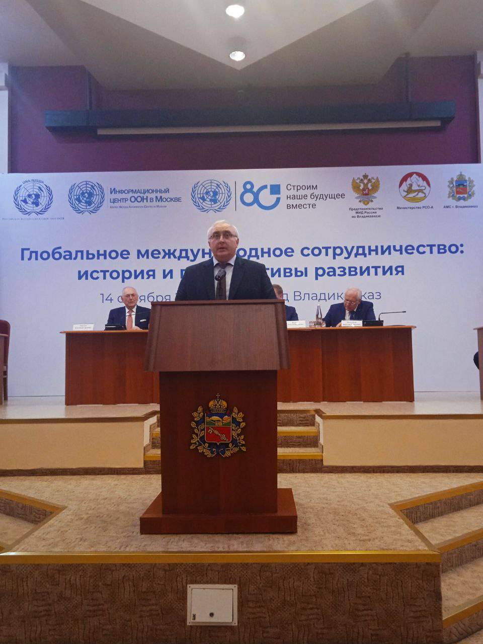 Во Владикавказе стартовала конференция «Глобальное международное сотрудничество: история и перспективы развития», приуроченная к 80-летию Организации Объединённых Наций.