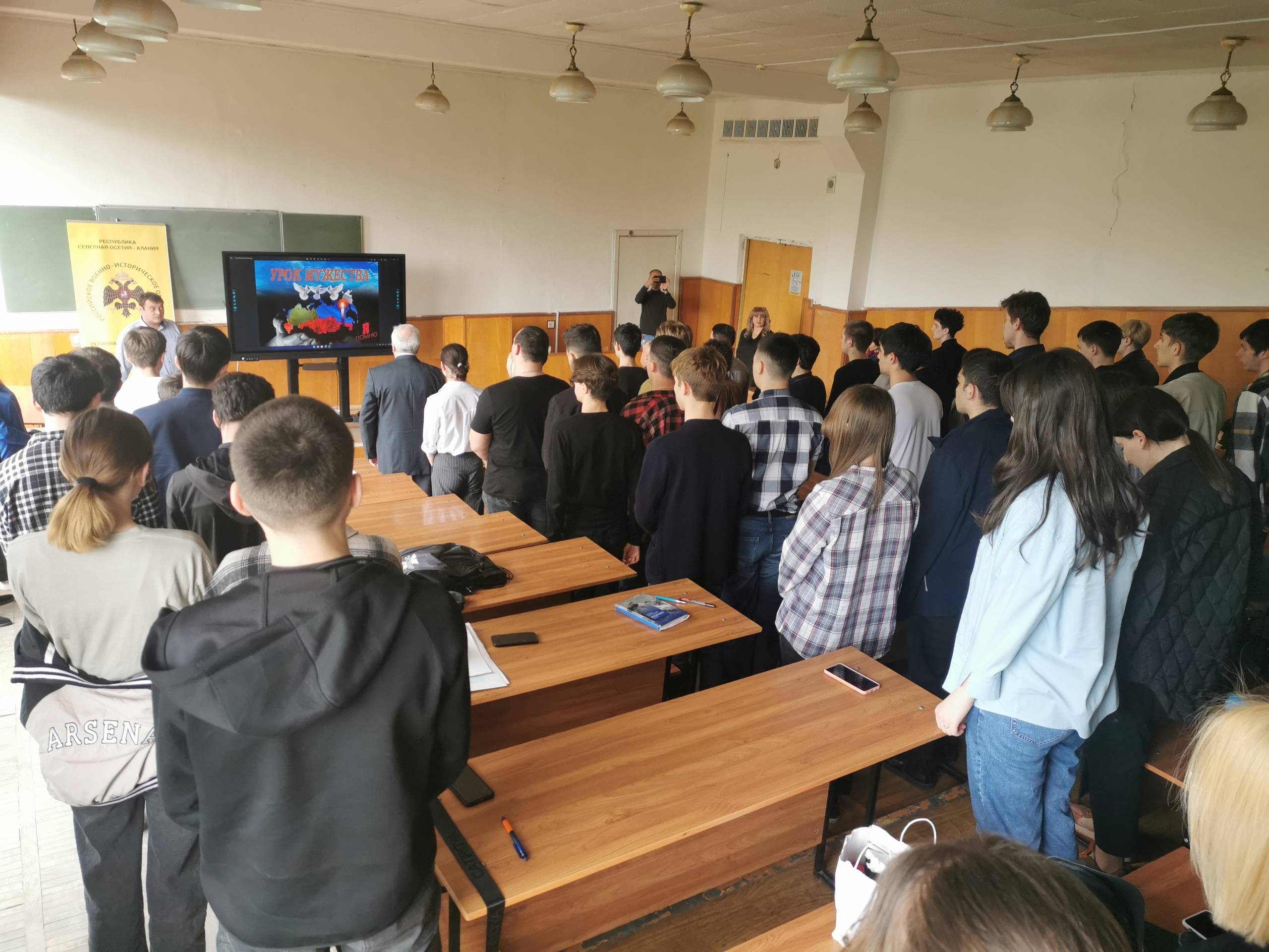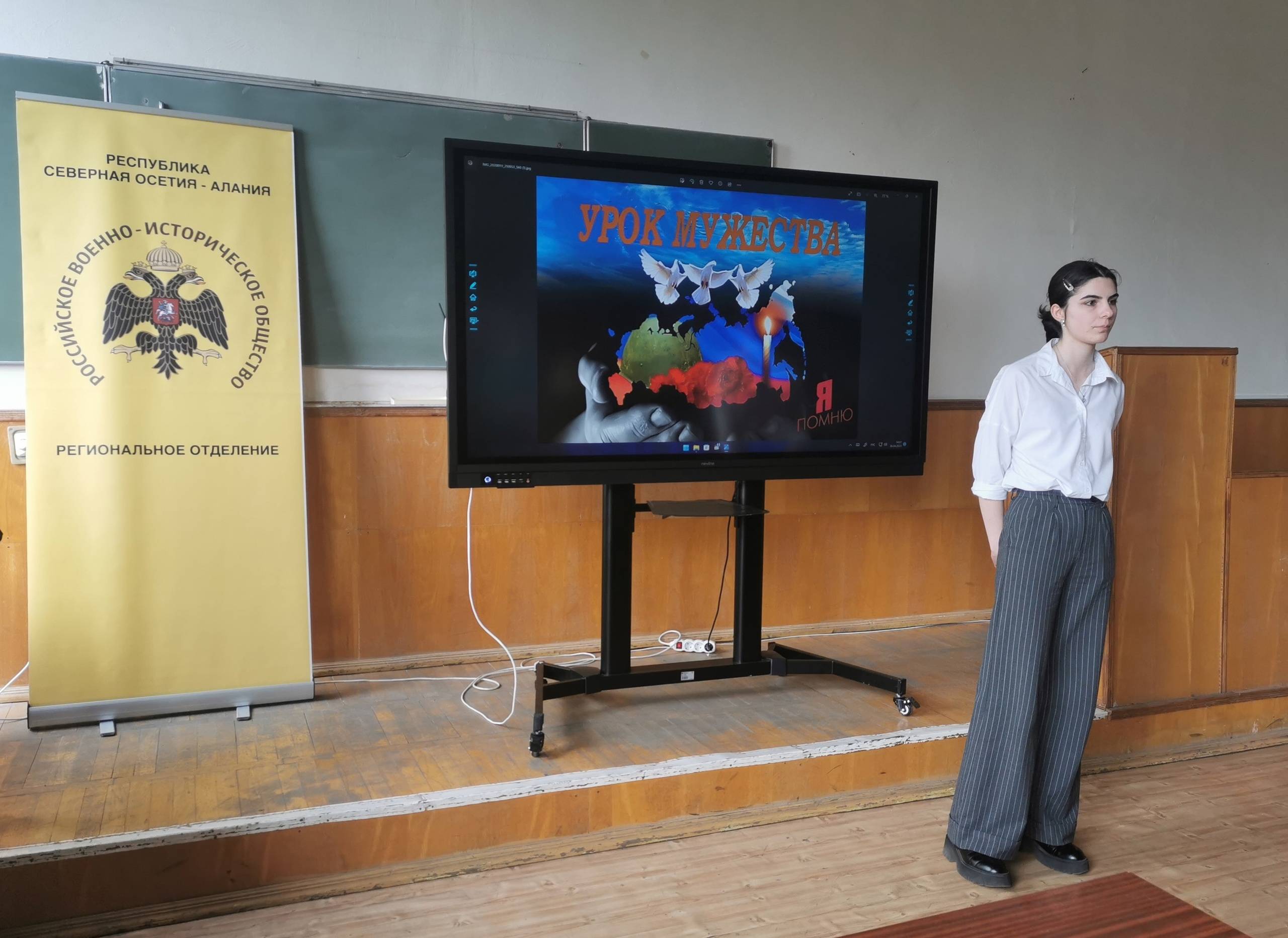 Урок мужества был организован при участии РО РВИО в РСО-Алания, Министерства по национальной политики и внешним связям и Республиканского Дома Дружбы.