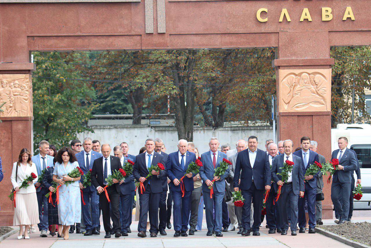 Делегаты съезда почтили память героев Великой Отечественной войны. На Мемориале Славы состоялось возложение цветов к Вечному огню и памятнику дважды Героя Советского Союза Исса Плиеву.