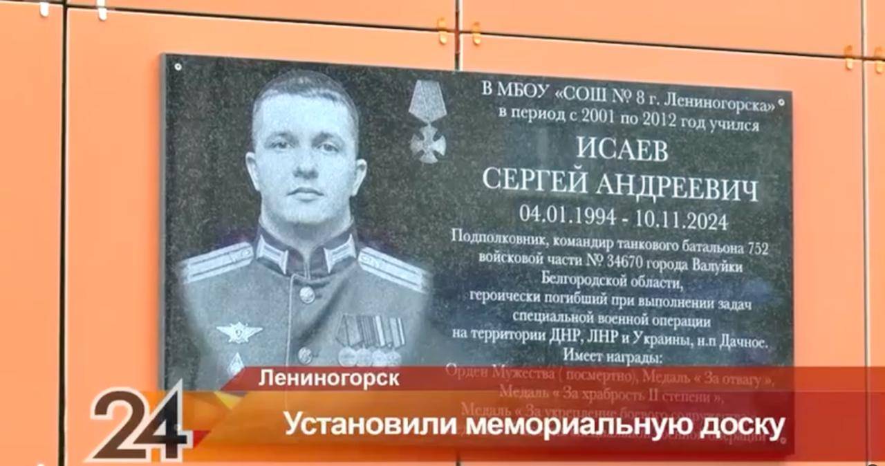 В Лениногорске у школы №8 была установлена мемориальная доска выпускнику, подполковнику Сергею Исаеву, погибшему в зоне СВО. 1 мая горожане торжественно встретили «Паровоз Победы» — мероприятие собрало ветеранов, школьников, педагогов и членов РВИО.