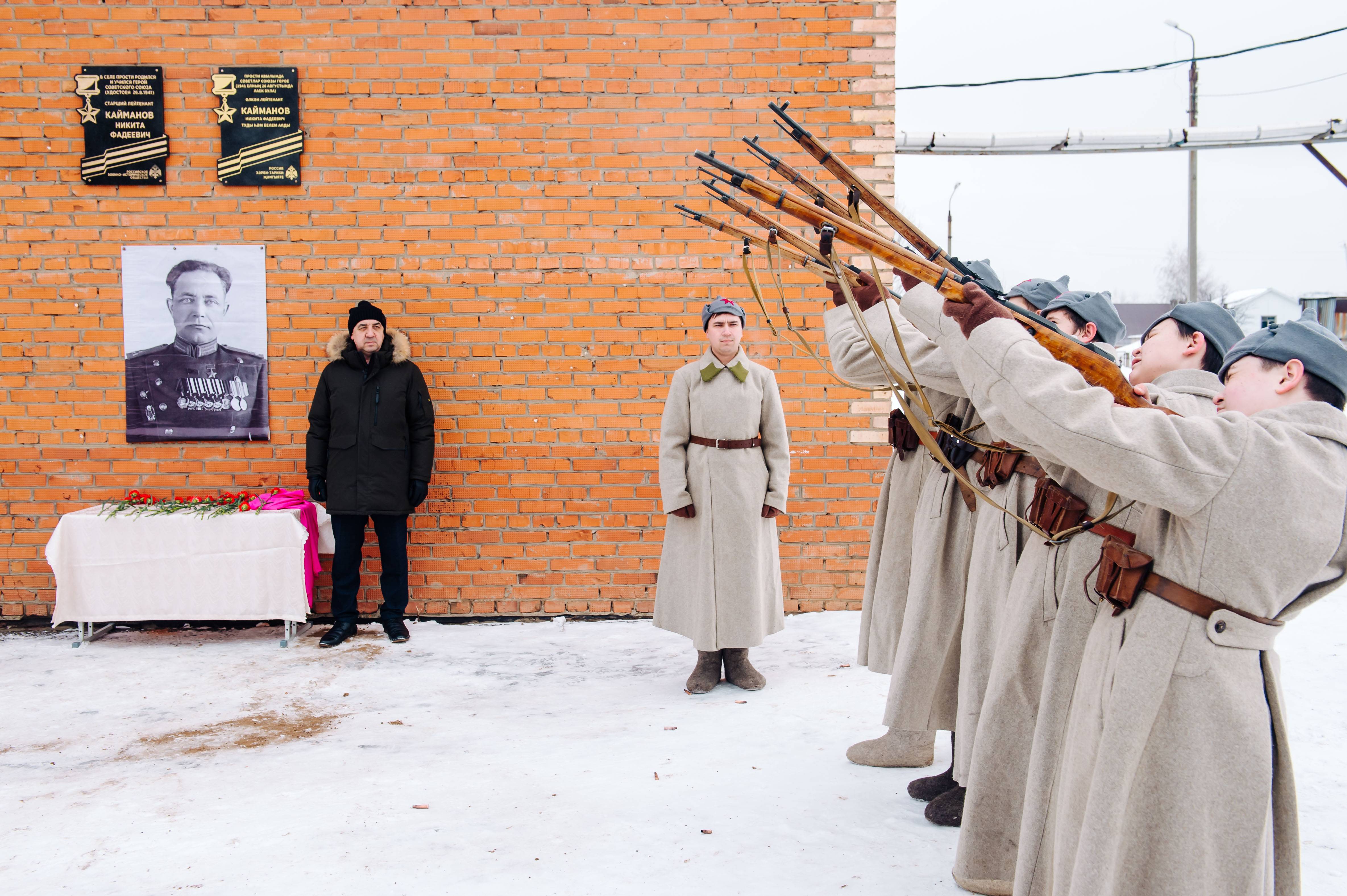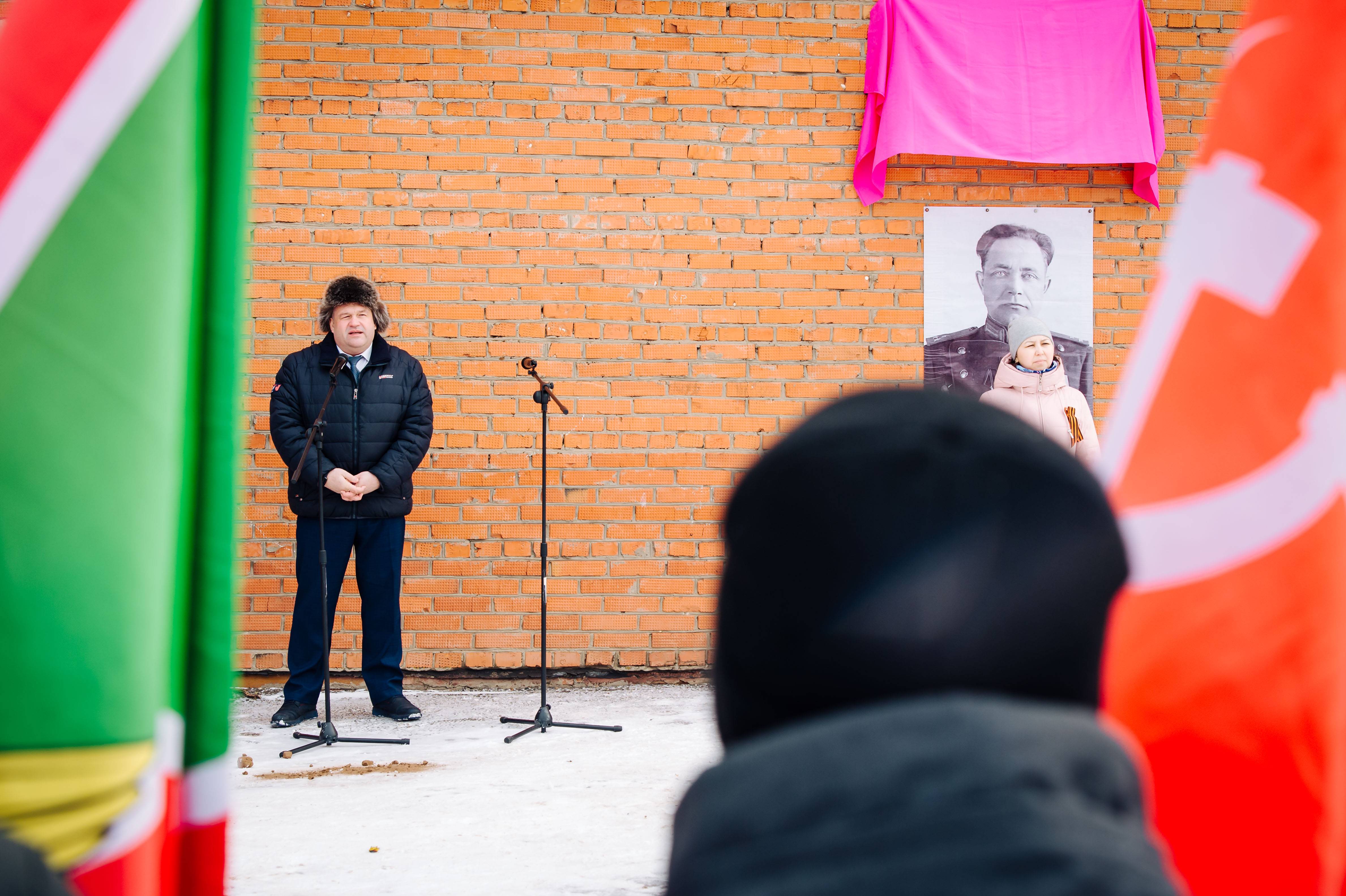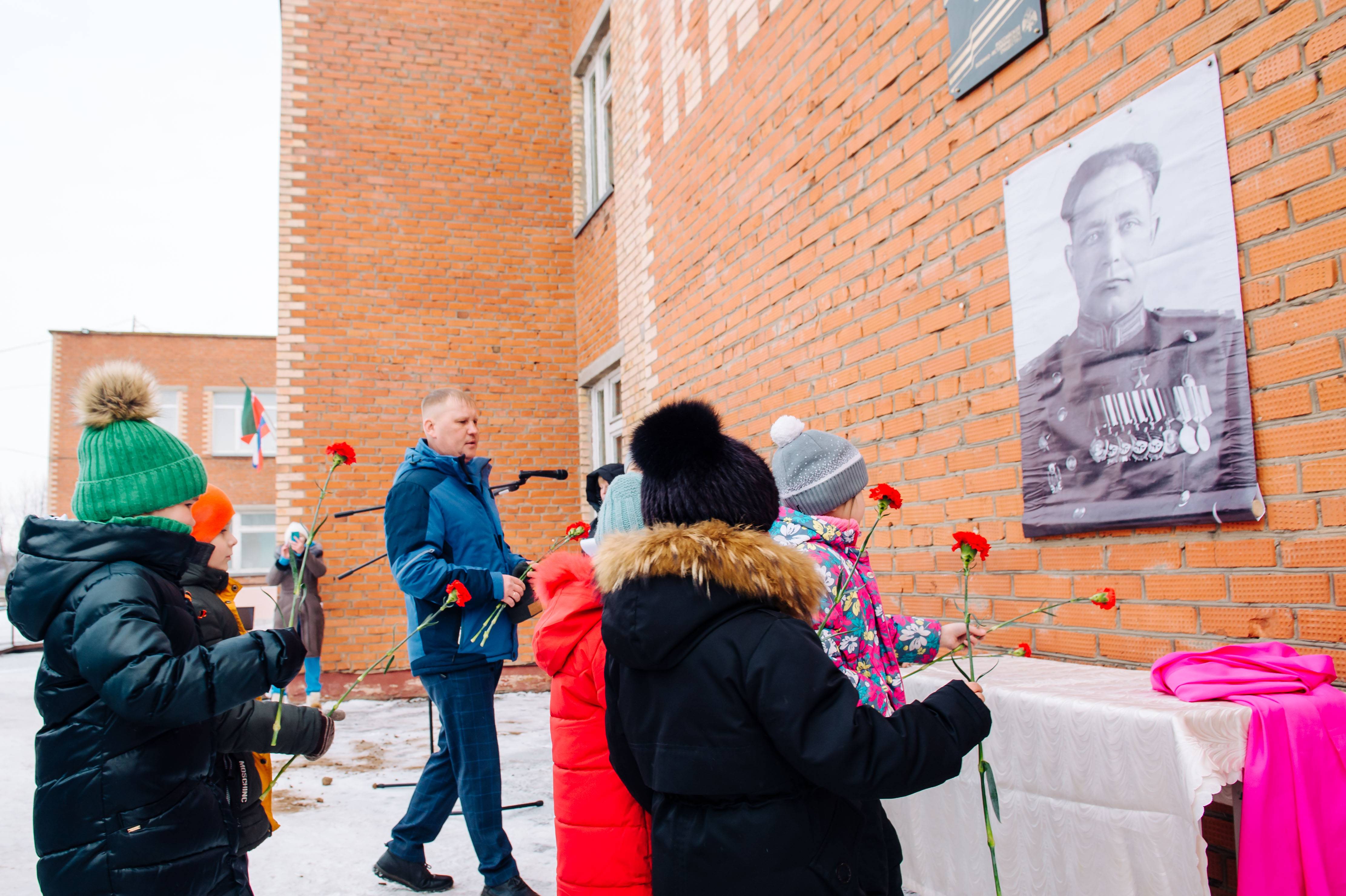 Открытие мемориальной доски прошло при участии Музея-мемориала Великой Отечественной войны. В открытии приняли участие исполнительный директор регионального отделения РВИО Александров Александр Александрович, глава сельского поселения Дамир Аглямович Бадардинов, заместитель главы Нижнекамского района Александр Витальевич Умников, председатель совета ветеранов Нижнекамского муниципального района Китанов Григорий Леонидович, начальник Управления образования г. Нижнекамска Айдар Хакимянович Гарифуллин.