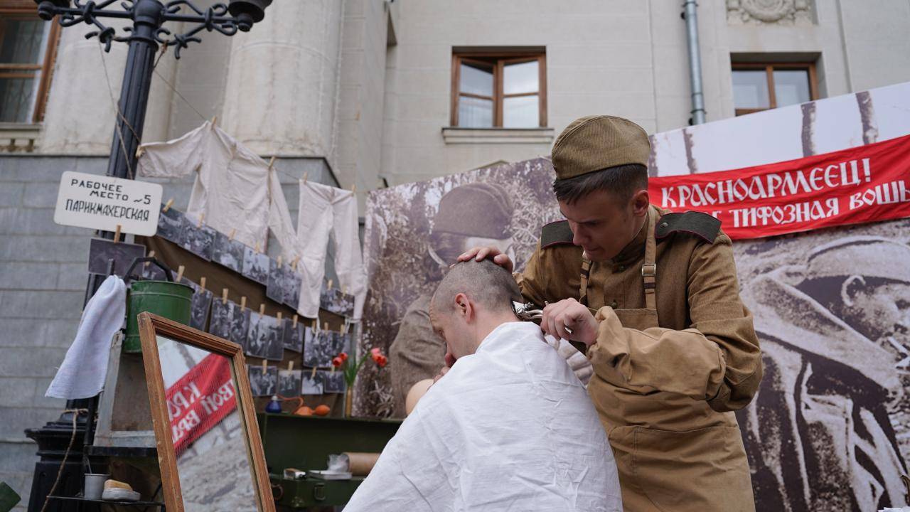 Вдоль всей улицы появилось несколько музейных и театрализованных зон, каждая из которых предлагала своё эмоциональное и историческое погружение. Горожан встречали агитационные плакаты времён войны, флаги, лозунги и силуэты бойцов, будто вышедших из кадров советской хроники. Над улицей развевались реплики военных транспарантов, звучали песни фронтовых лет.