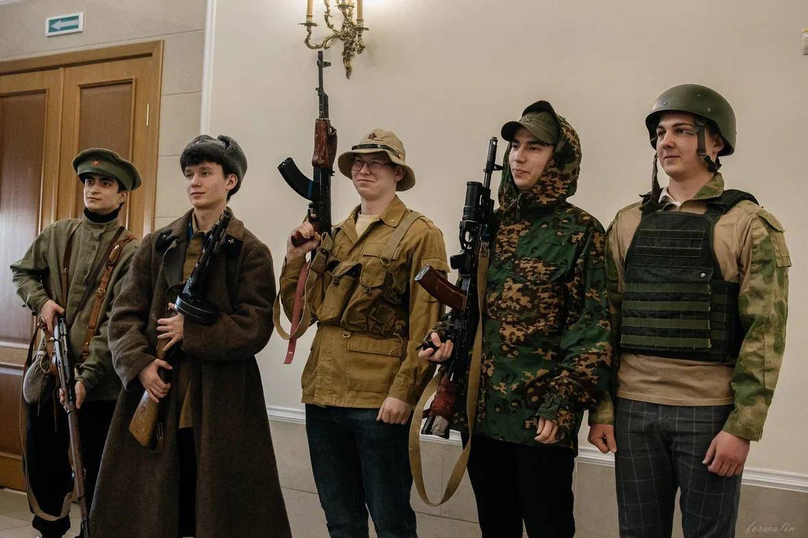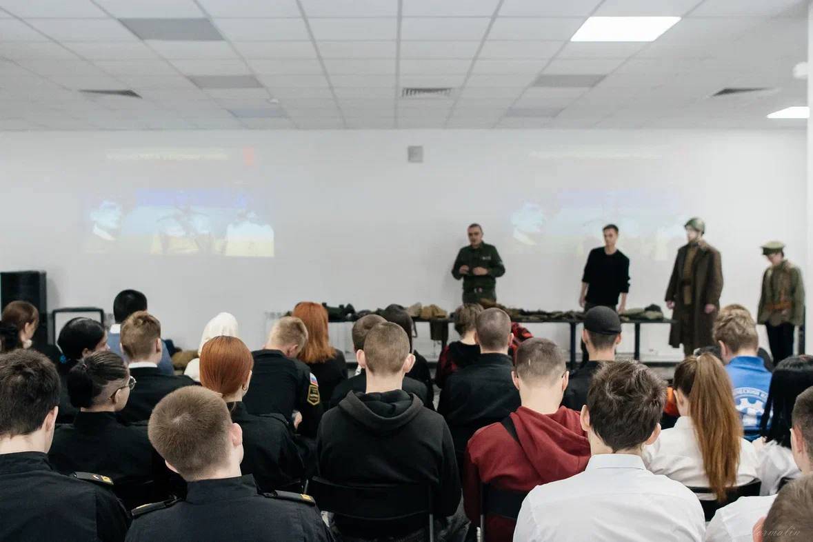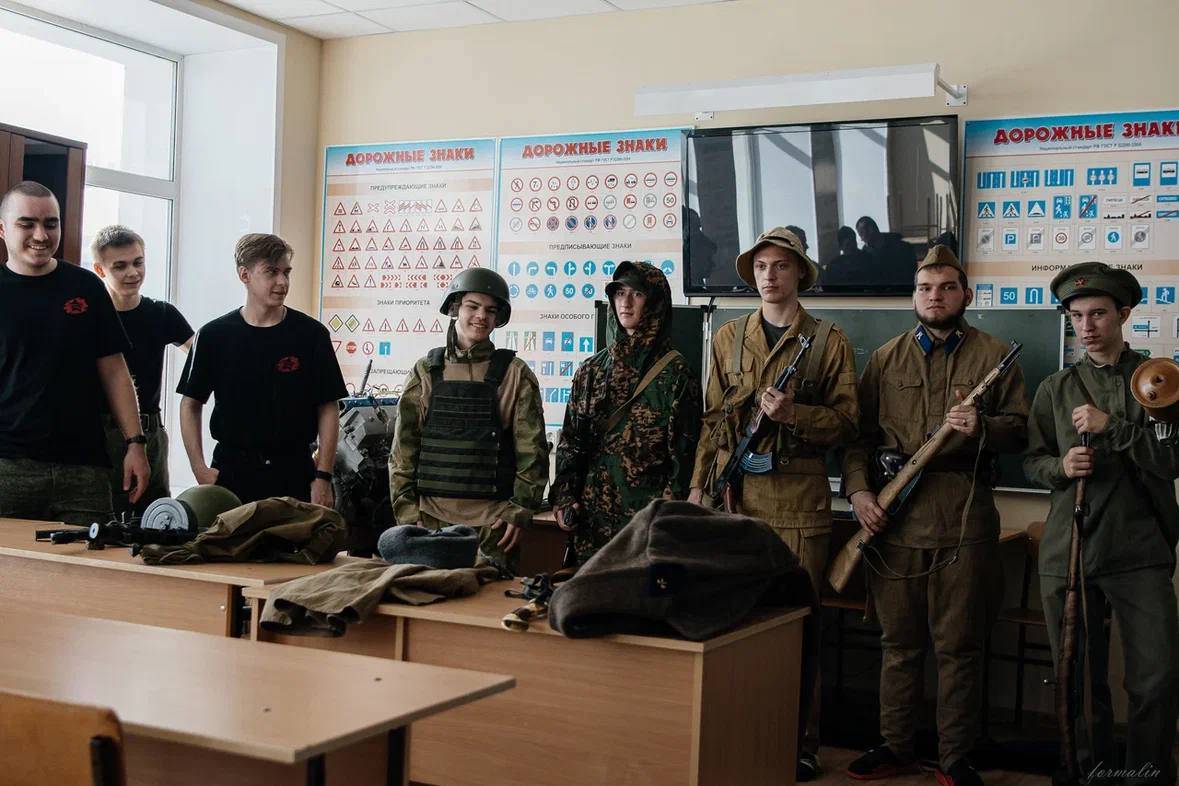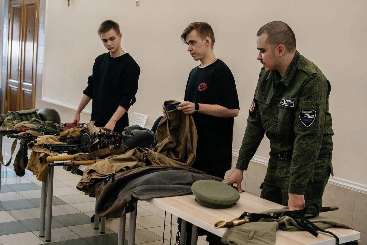 В рамках проекта «Область славы», активисты Российского Военно-Исторического Общества по Республике Татарстан и военно-патриотического движения «Курс» провели серию лекций для студентов специальных учебных заведений и вузов районов Республики. Лекции были посвящены развитию формы, снаряжения и оружия русского солдата от Первой Мировой войны до Специальной Военной Операции. Ребятам не только продемонстрировали образцы формы и снаряжения, но и дали все это примерить. Они смогли ощутить себя в роли солдат разных эпох. Молодежи районов республики Татарстан, рассказали про героические страницы нашей истории и подвиги защитников Отечества разных времен.