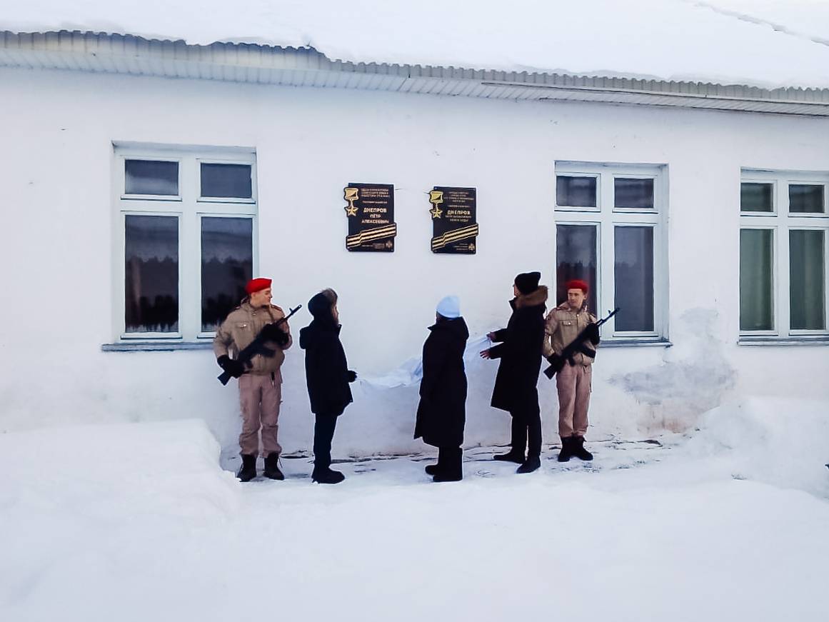 Мемориальная доска была установлена на здании местной школы, которая также носит имя Героя Советского Союза Петра Днепрова.