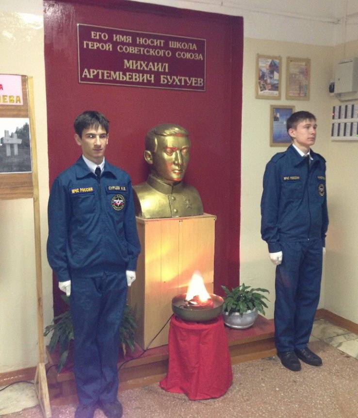 13 мая 1961 г. по просьбе коллектива и учащихся Кызылской школе № 1 было присвоено почетное имя Героя Советского Союза Михаила Бухтуева.