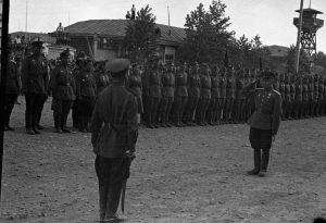 Фото В.П. Ермолаева «Возвращение тувинских добровольцев на родину. Командир, капитан Тулуш Кечил-оол рапортует о выполнении боевых заданий по освобождении Украины от фашистского ига. 1944 год».