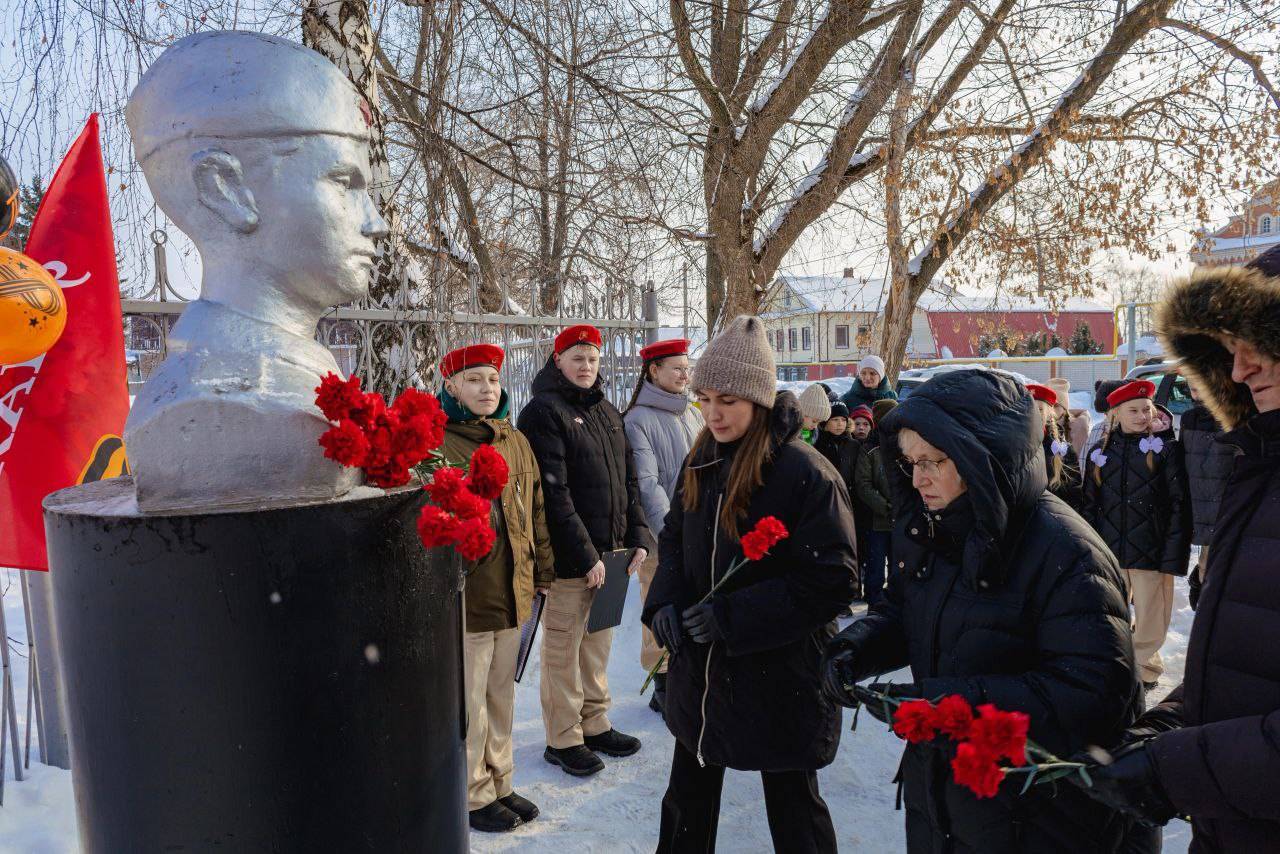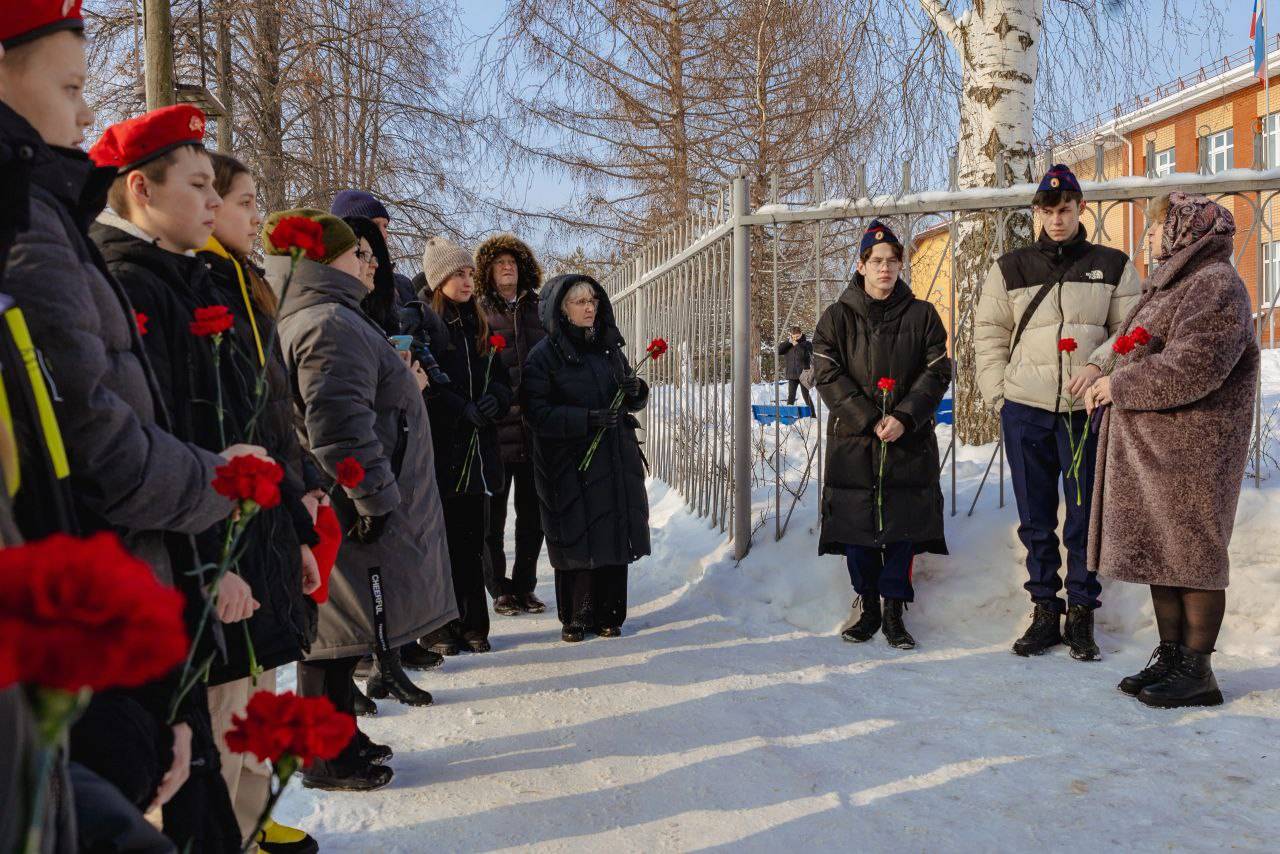 Директор школы Елена Иванова и начальник Управления культуры, спорта и молодежной политики города Сарапула Юлия Седова обратились к участникам мероприятия. После минуты молчания состоялось возложение цветов в память о нашем земляке.