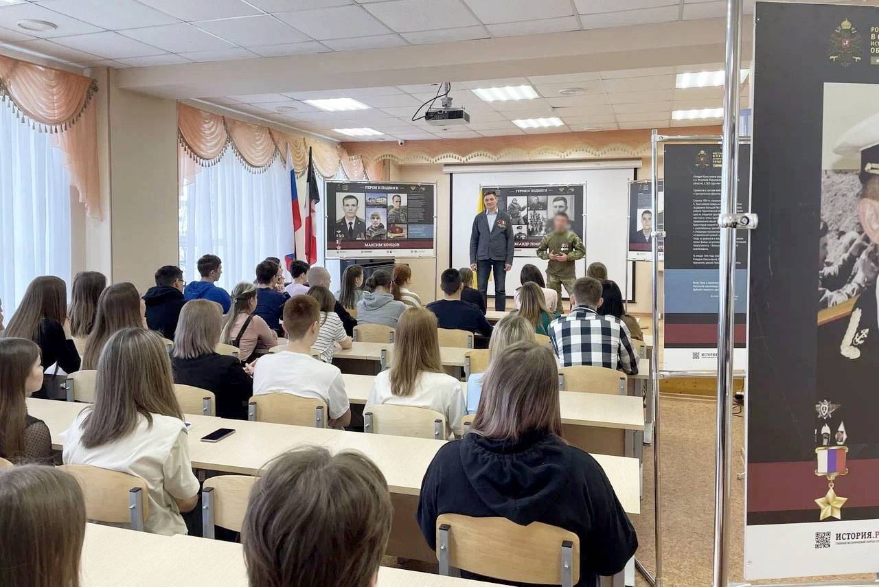 Основная часть мероприятия была посвящена разговору с участниками боевых действий. Перед аудиторией выступили: участник боевых действий на Кавказе, кавалер Ордена Мужества Олег Владимирович Большаков, и участник СВО, командир специального подразделения, награжденный медалью «За отвагу». Служебная необходимость не дает права раскрывать его личность. Можно лишь сказать, что выступление его был выслушано студентами и профессорско-преподавательским составом юридического вуза с большим интересом.